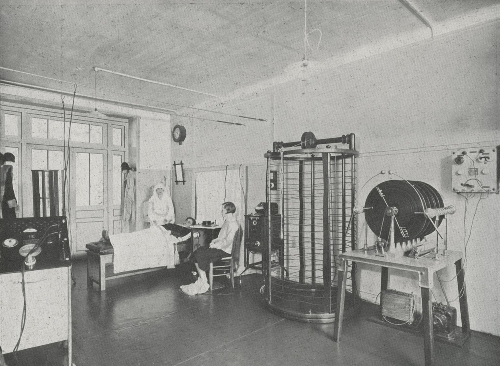 Journal de radiologie et d'électrologie, 1931, 15(7), p. 390, fig. 24 : "Salle de haute fréquence, diathermie et courants statiques"