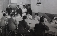 Afternoon snack given to worker children in a cosmetic company. "Rôle social du Syndicat national de la parfumerie". Parfumerie, 1943.