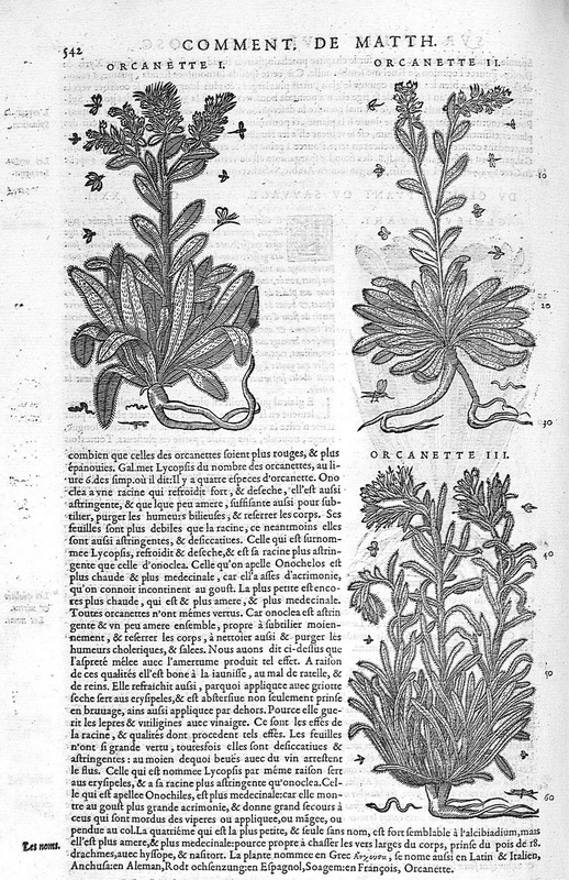 | Leonhart Fuchs (1501-1566), médecin et botaniste allemand, est l’auteur d’un important traité de botanique (De historia stirpium commentarii … 1542, Bâle), dans lequel il décrit plus de 400 espèces de son pays. On lui doit également la description de l’usage d’orchidées pour combattre l’inflammation dont celle nommée Satyrium regium pour ôter les rides de la face |
