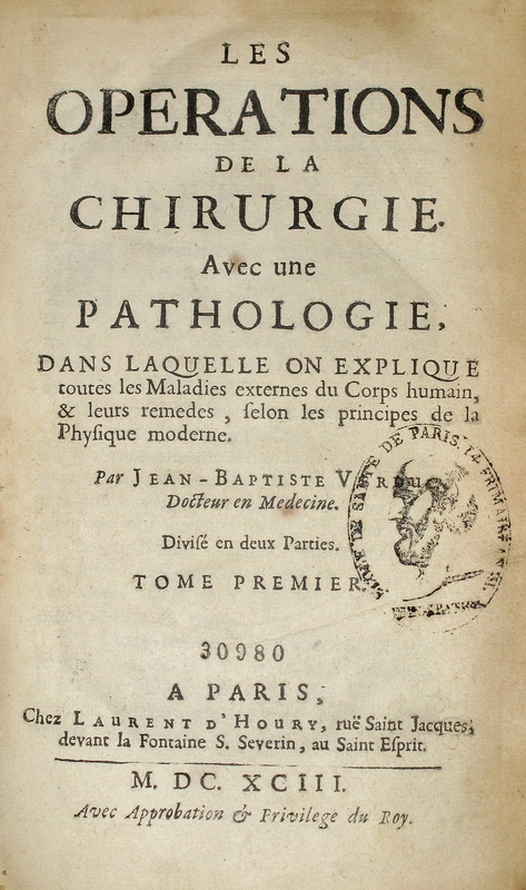 | Page de titre Jean-Baptiste Verduc ( ?), Les opérations de la chirurgie |