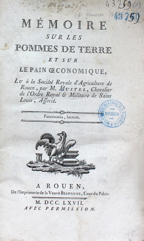 plusieurs Sociétés d'agriculture, François Mustel (1719-1803) a encouragé la culture de la pomme de terre en Normandie au milieu du XVIII ème siècle. En 1767, année de