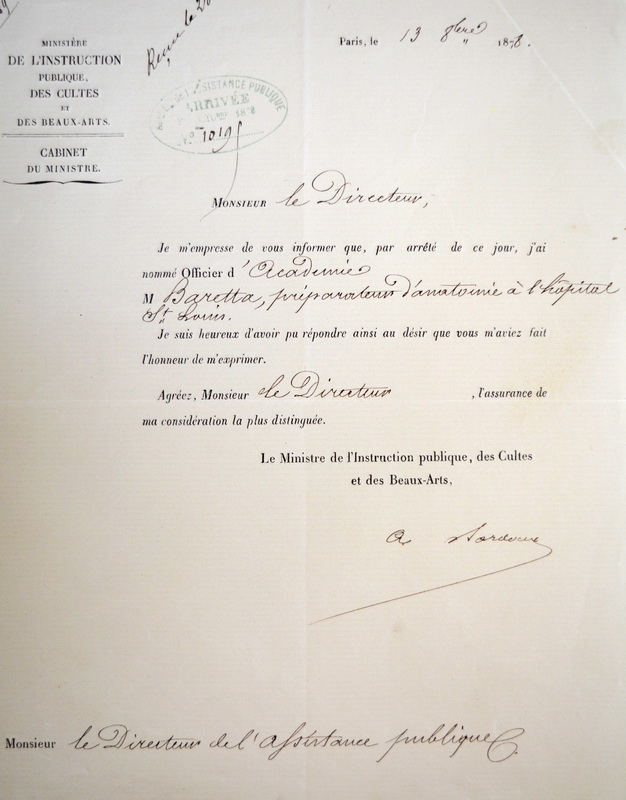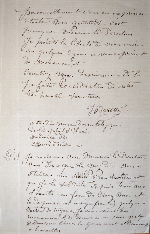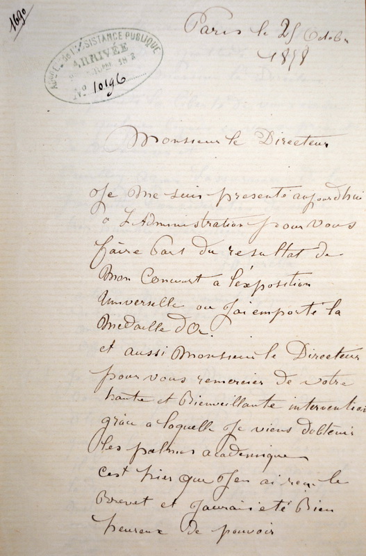 Courrier de Baretta au Directeur de l’Assistance