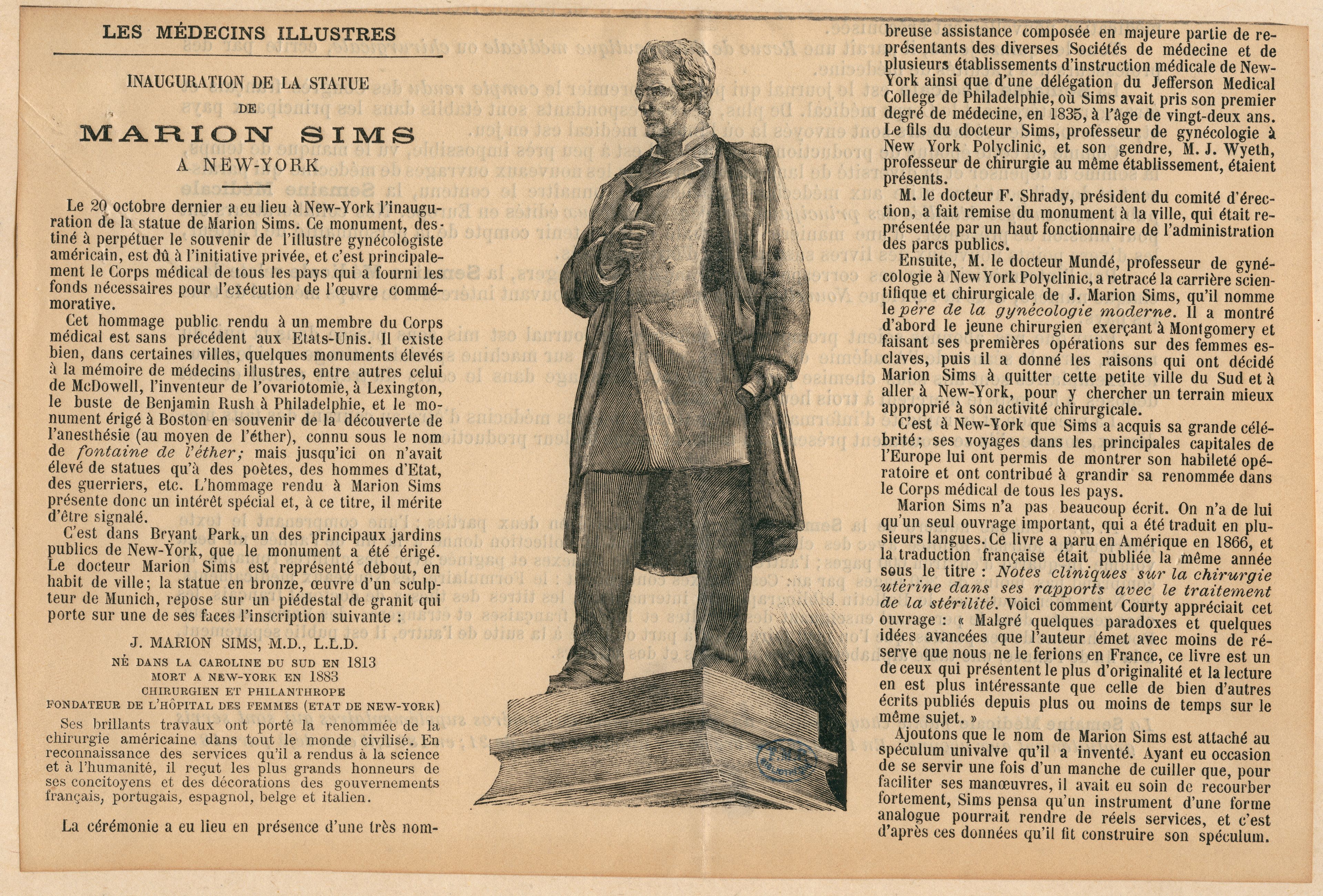 Inauguration de la statue de Marion Sims à New-York