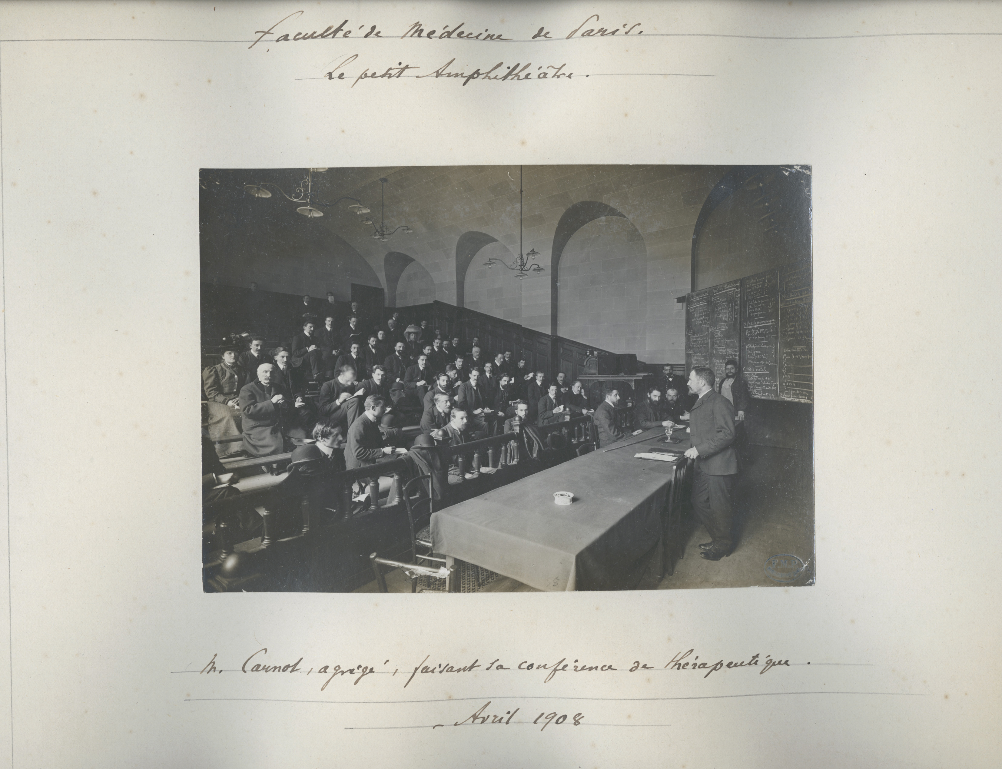Faculté de médecine de Paris : le petit amphithéâtre ; M. Carnot, agrégé, faisant sa conférence de thérapeutique