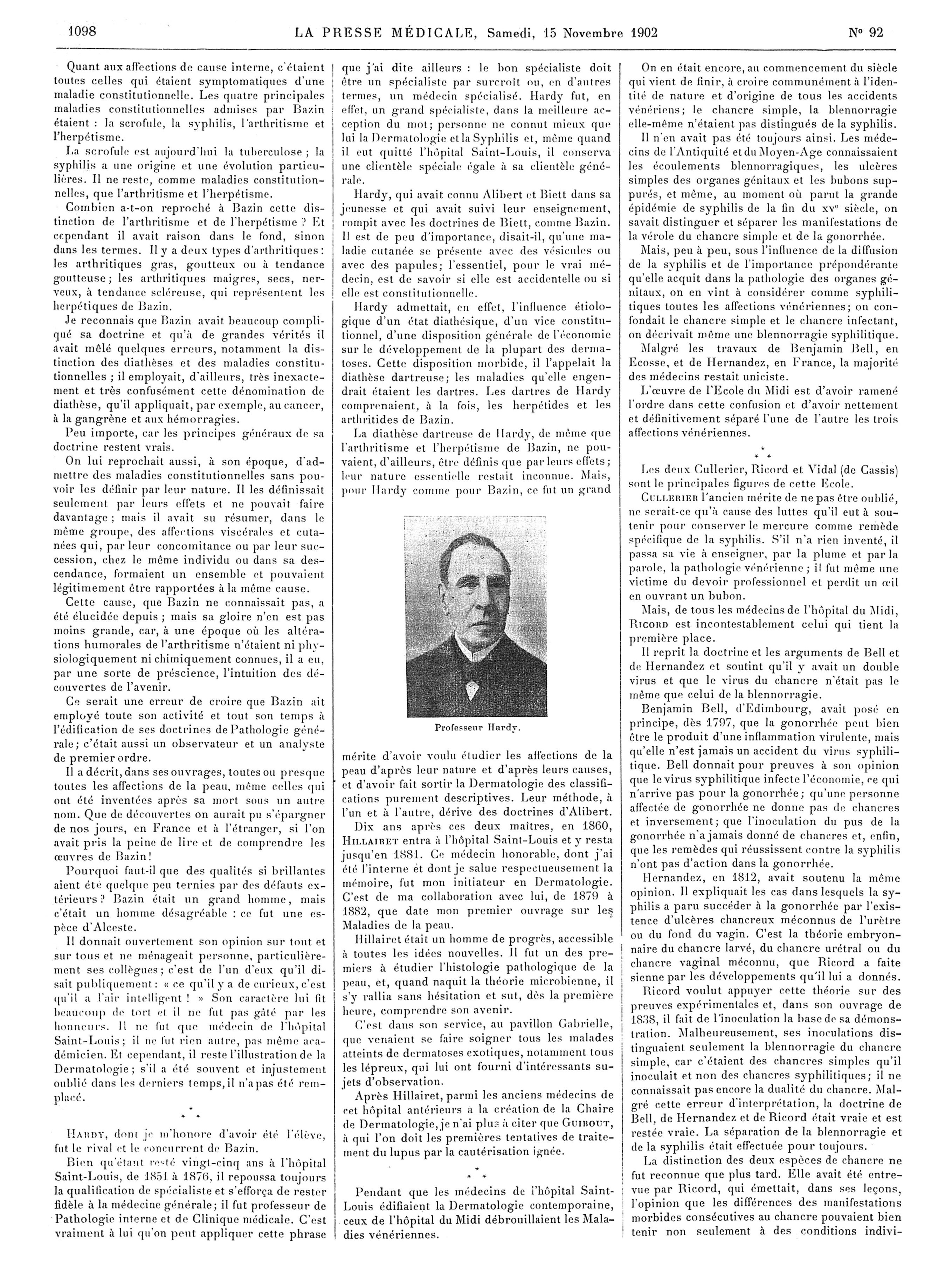 Professeur Hardy - La Presse médicale - [Articles originaux]