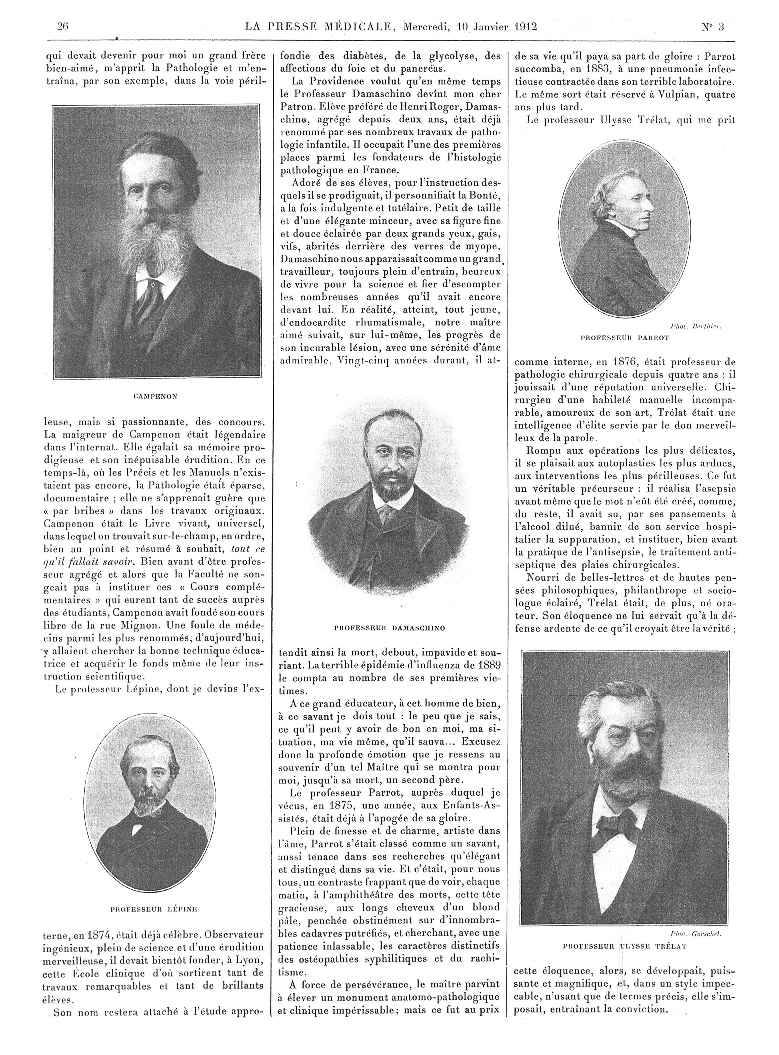 Campenon / Professeur Lépine / Professeur Damaschino / Professeur Parrot / Professeur Ulyse Trélat - La Presse médicale - [Articles originaux]