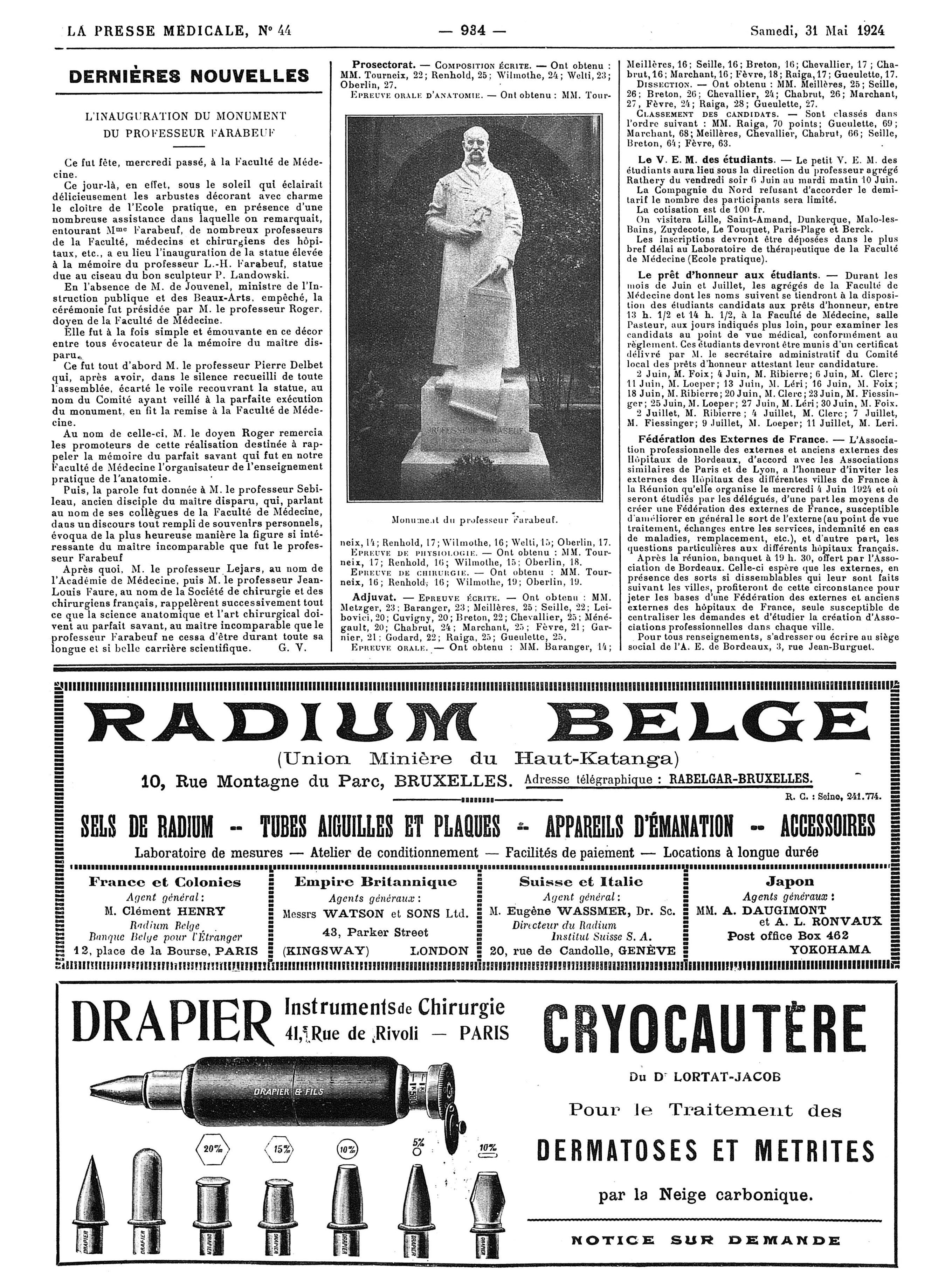 Monument du Professeur Farabeuf - La Presse médicale - [Volume d'annexes]