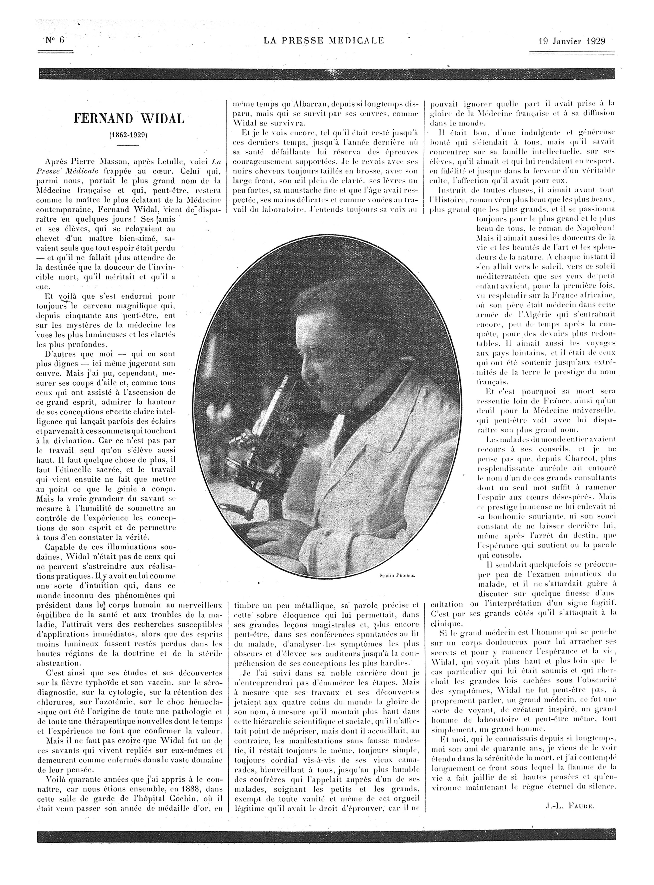 Fernand Widal (1862-1929) - La Presse médicale - [Articles originaux]