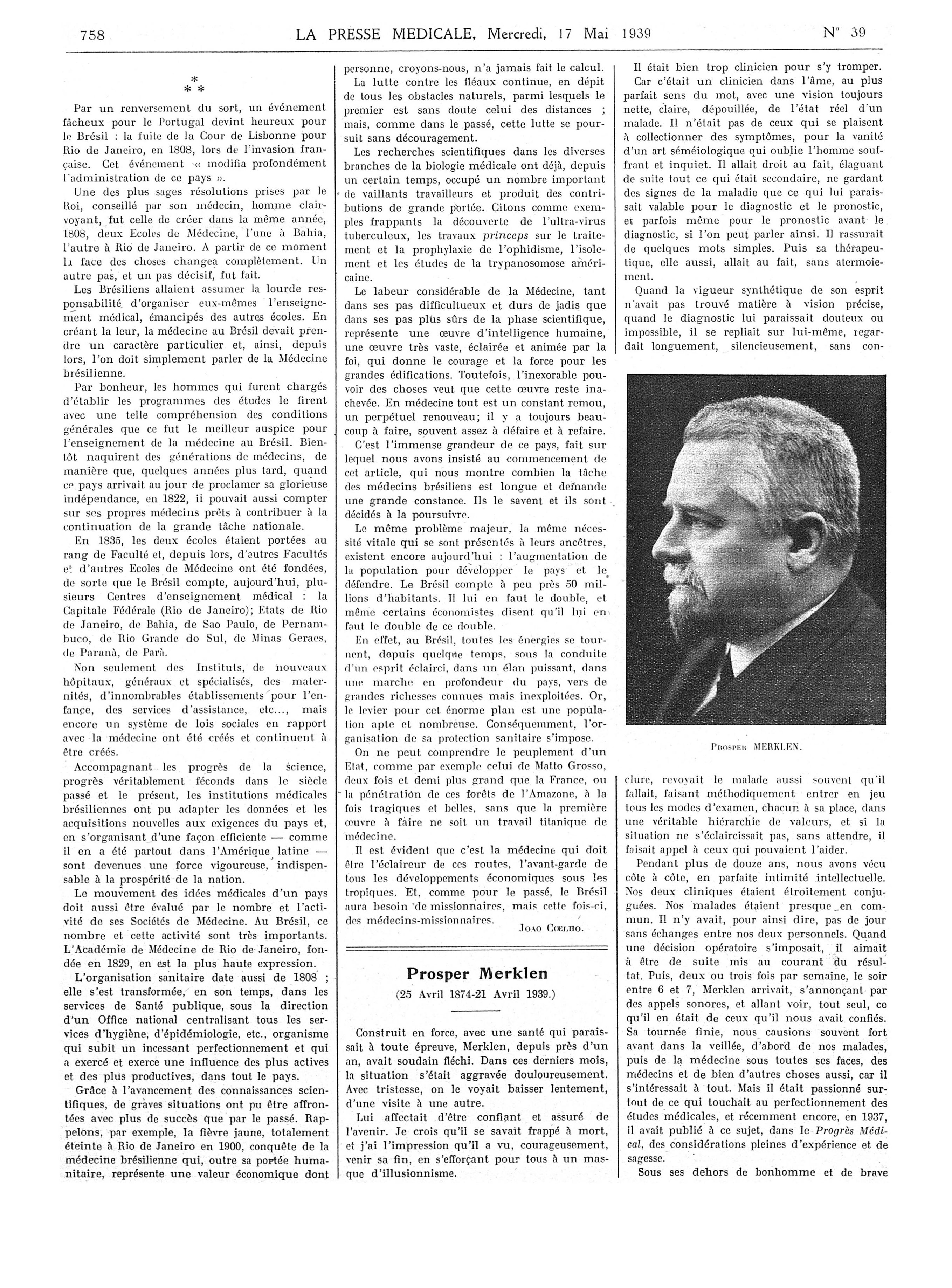 Prosper Merklen - La Presse médicale - [Articles originaux]