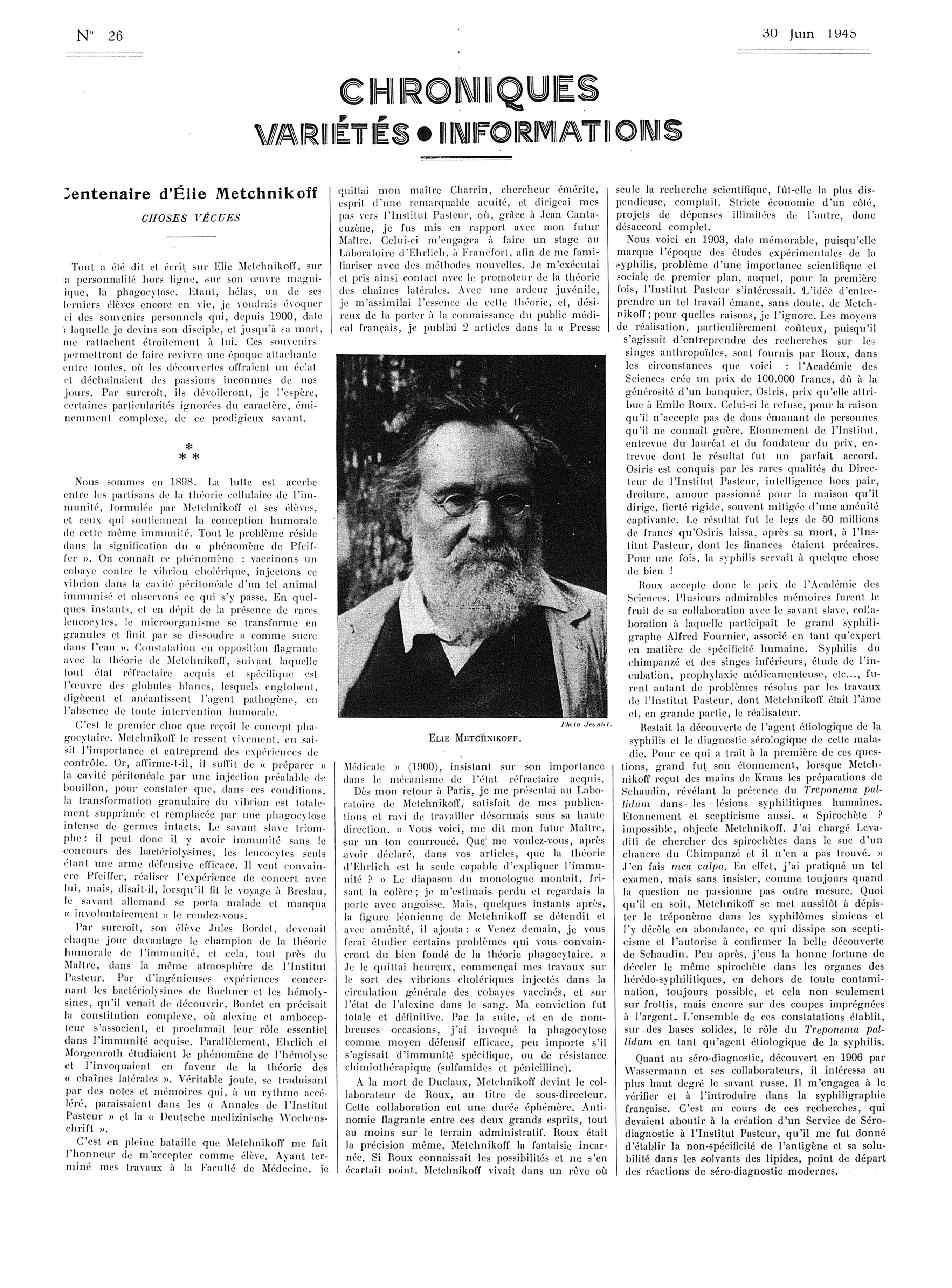 Elie Metchnikoff - La Presse médicale - [Articles originaux]