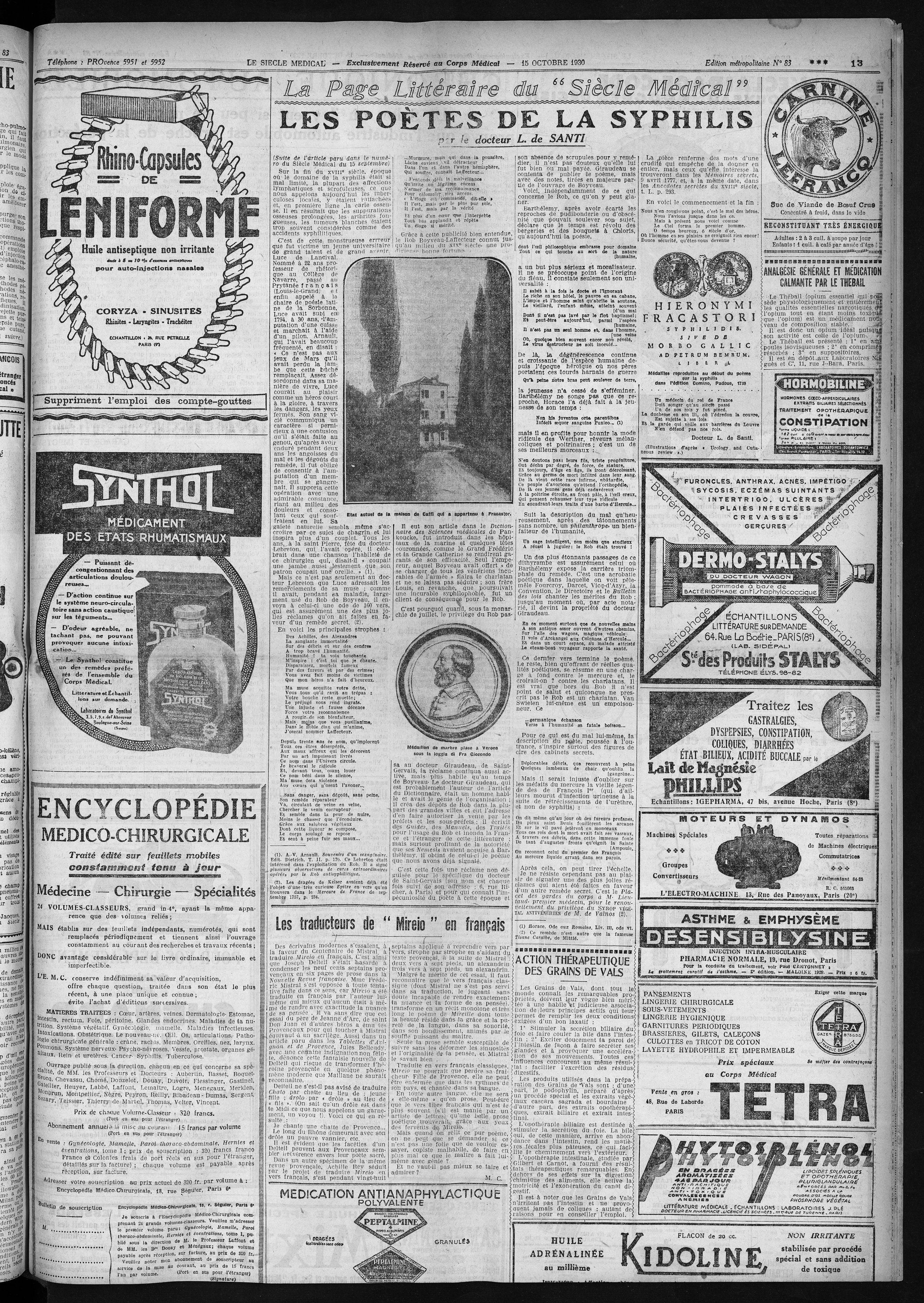 Etat actuel de la maison de Caffi qui a appartenu à Fracastor / Médaillon de marbre place à Vérone sous la loggia di Fra Ciocondo - Le siècle médical
