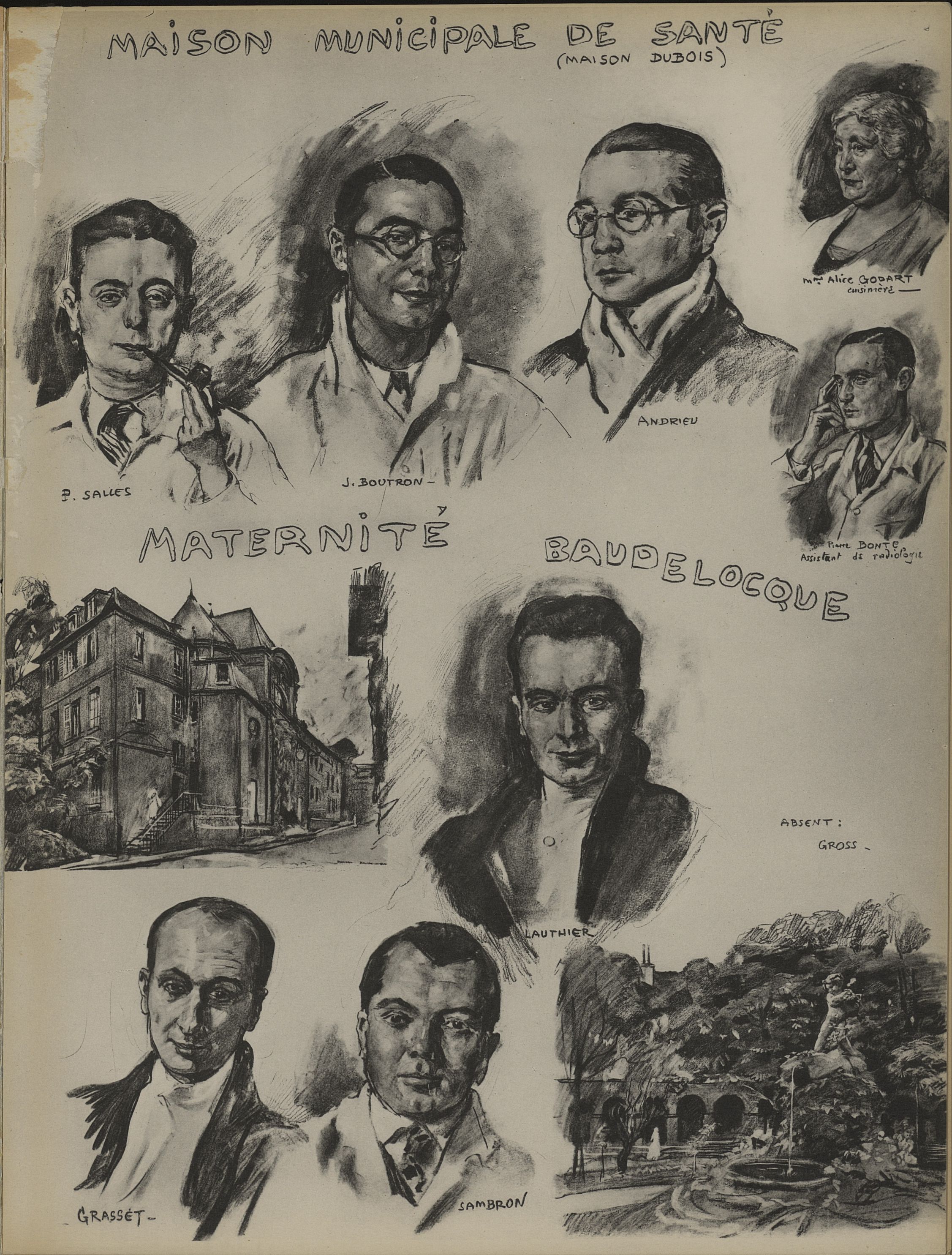 Maison municipale de santé (maison Dubois): P. Salles ; J. Boutron ; Andrieu ; Mme Alice Godart ; Pierre Bonte / Maternité Baudelocque: Lauthier ; Grasset ; Sambron - Album de l'internat