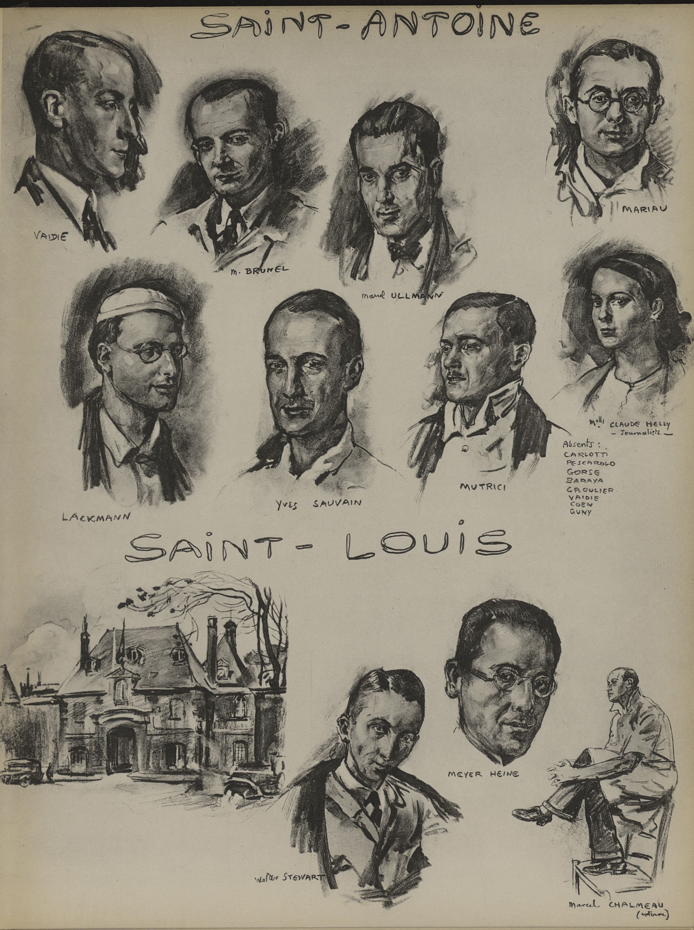 Saint-Antoine: Vaidie ; M. Brunel ; Marcel Ullmann ; Mariau ; Lackmann ; Yves Sauvain ; Mutrici ; Melle Claude Helly / Saint-Louis: Walter Stewart ; Meyer Heine ; Marcel Chalmeau - Album de l'internat