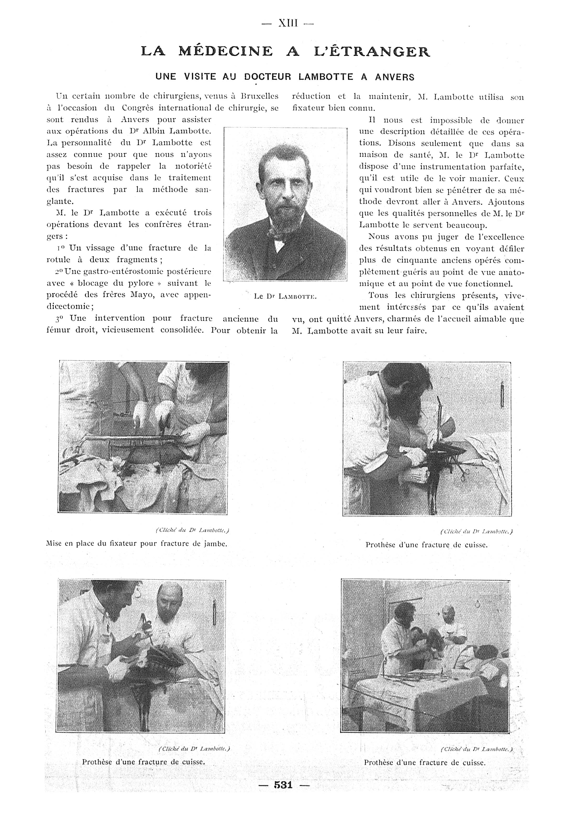 Le Dr Lambotte / Mise en place du fixateur pour fracture de jambe / Prothèse d'une fracture de cuisse / Prothèse d'une fracture de cuisse / Prothèse d'un fracture de cuisse - Paris médical : la semaine du clinicien