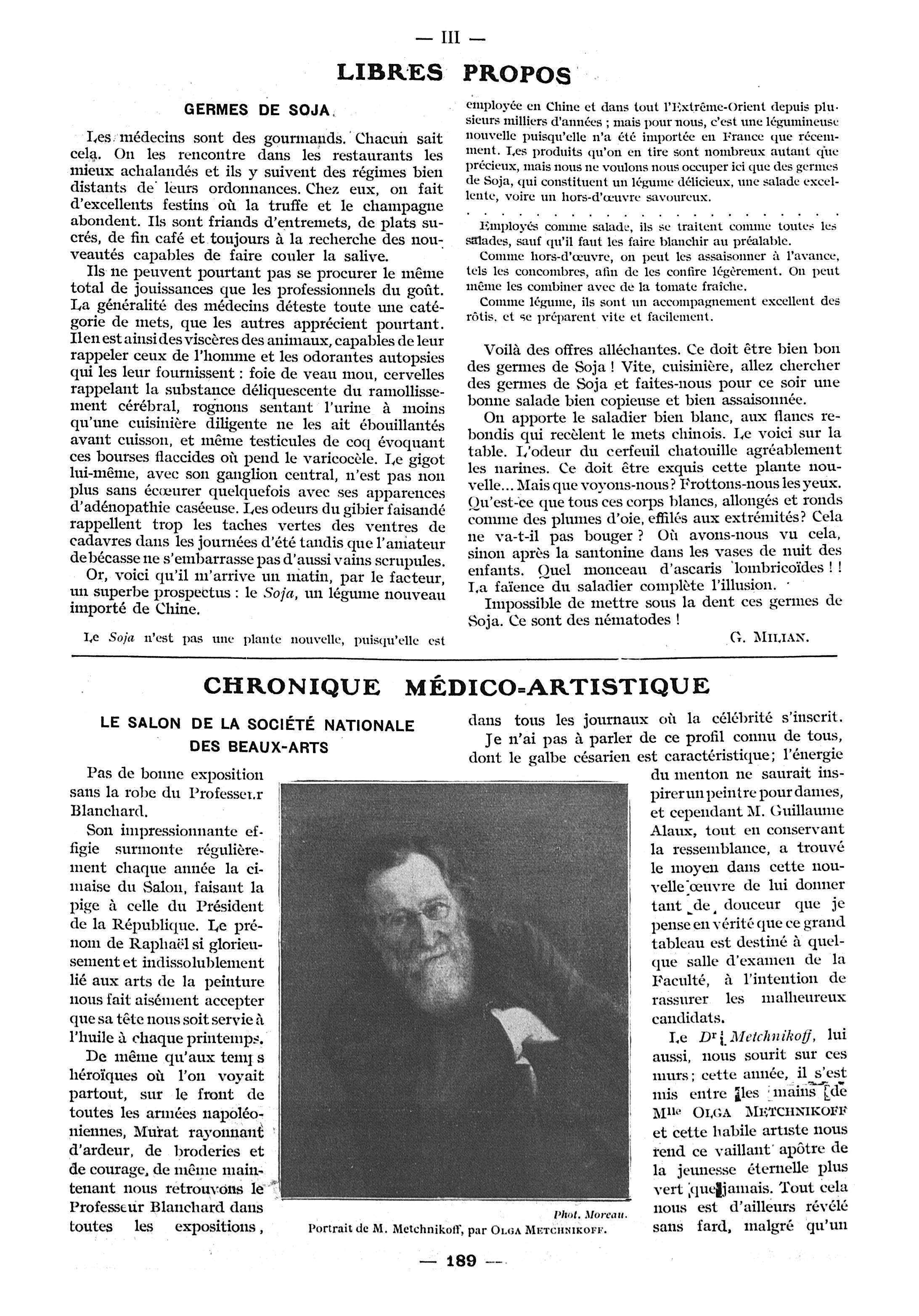 Portrait de M. Metchnikoff - Paris médical : la semaine du clinicien