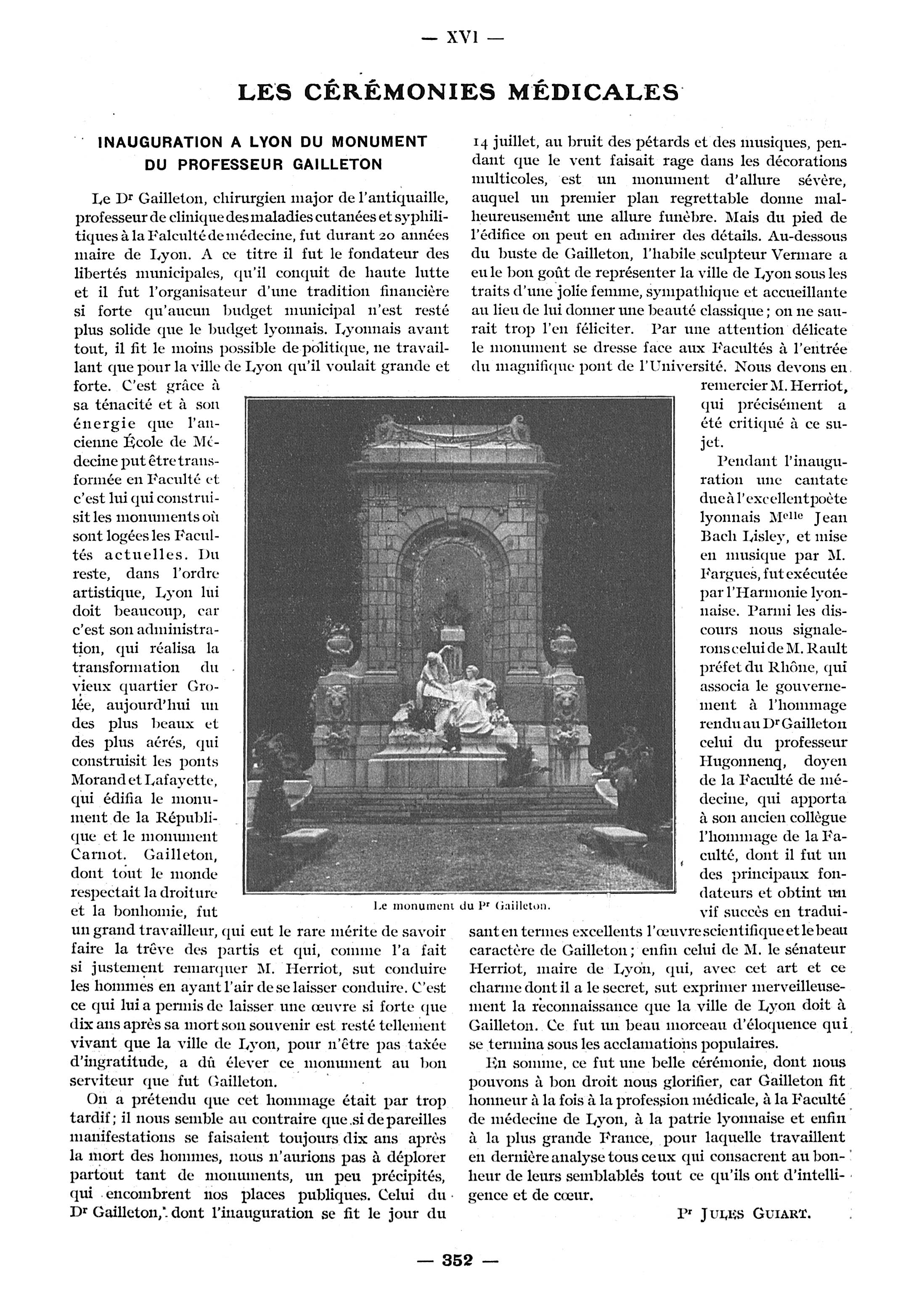 Le monument du Pr Gailleton - Paris médical : la semaine du clinicien