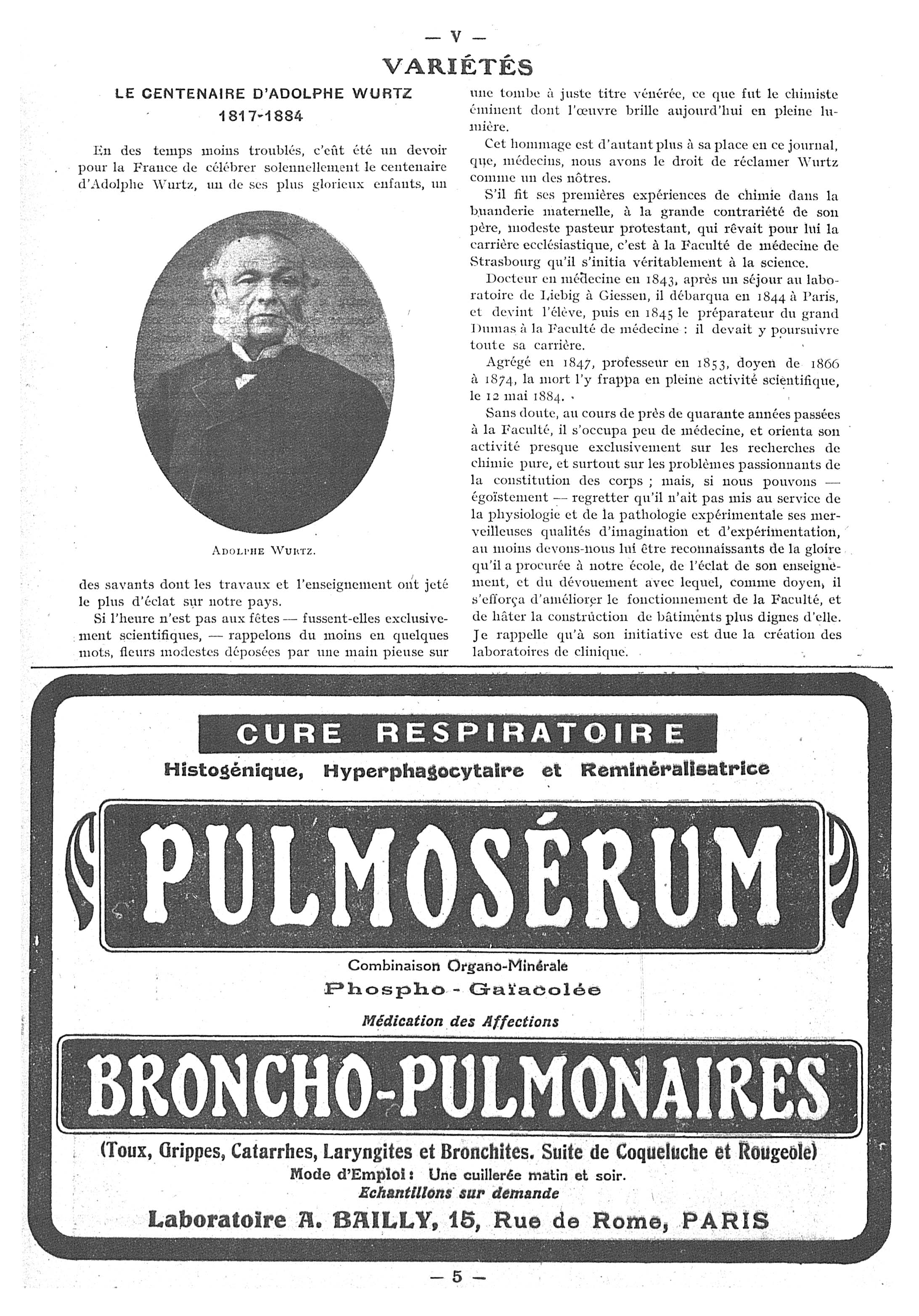 Adolphe Wurtz - Paris médical : la semaine du clinicien