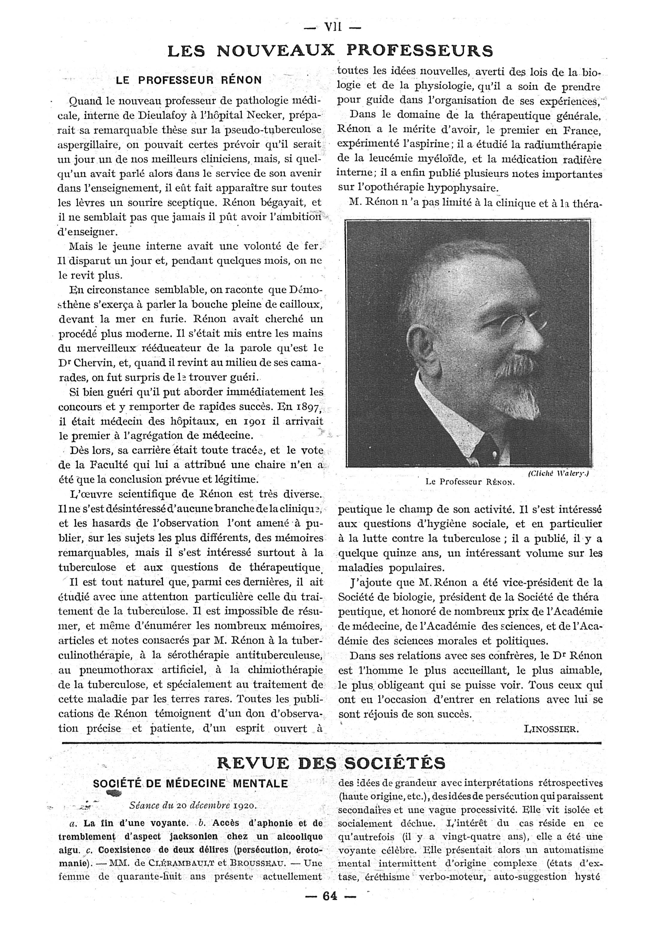 Le Professeur Rénon - Paris médical : la semaine du clinicien