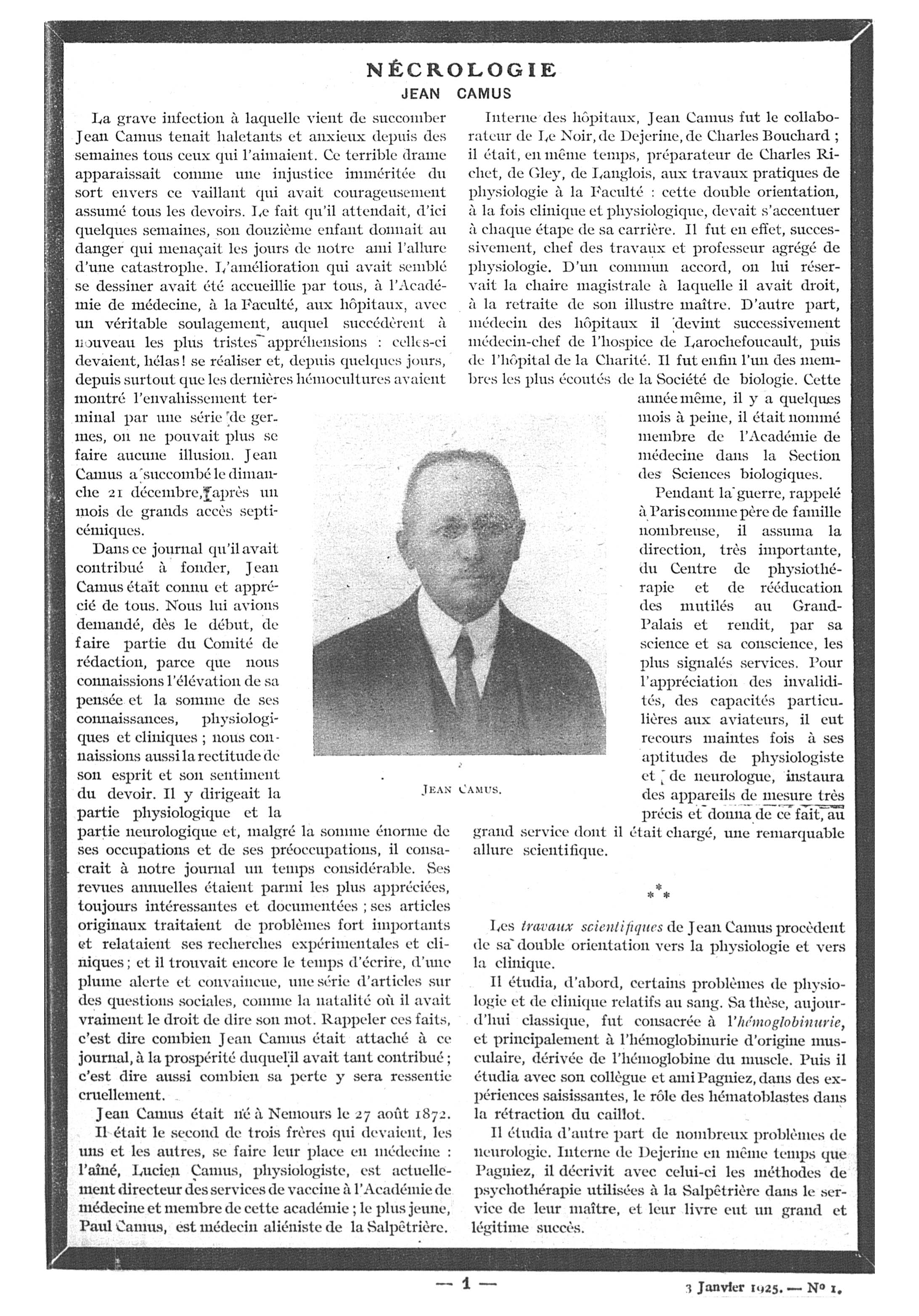 Jean Camus - Paris médical : la semaine du clinicien