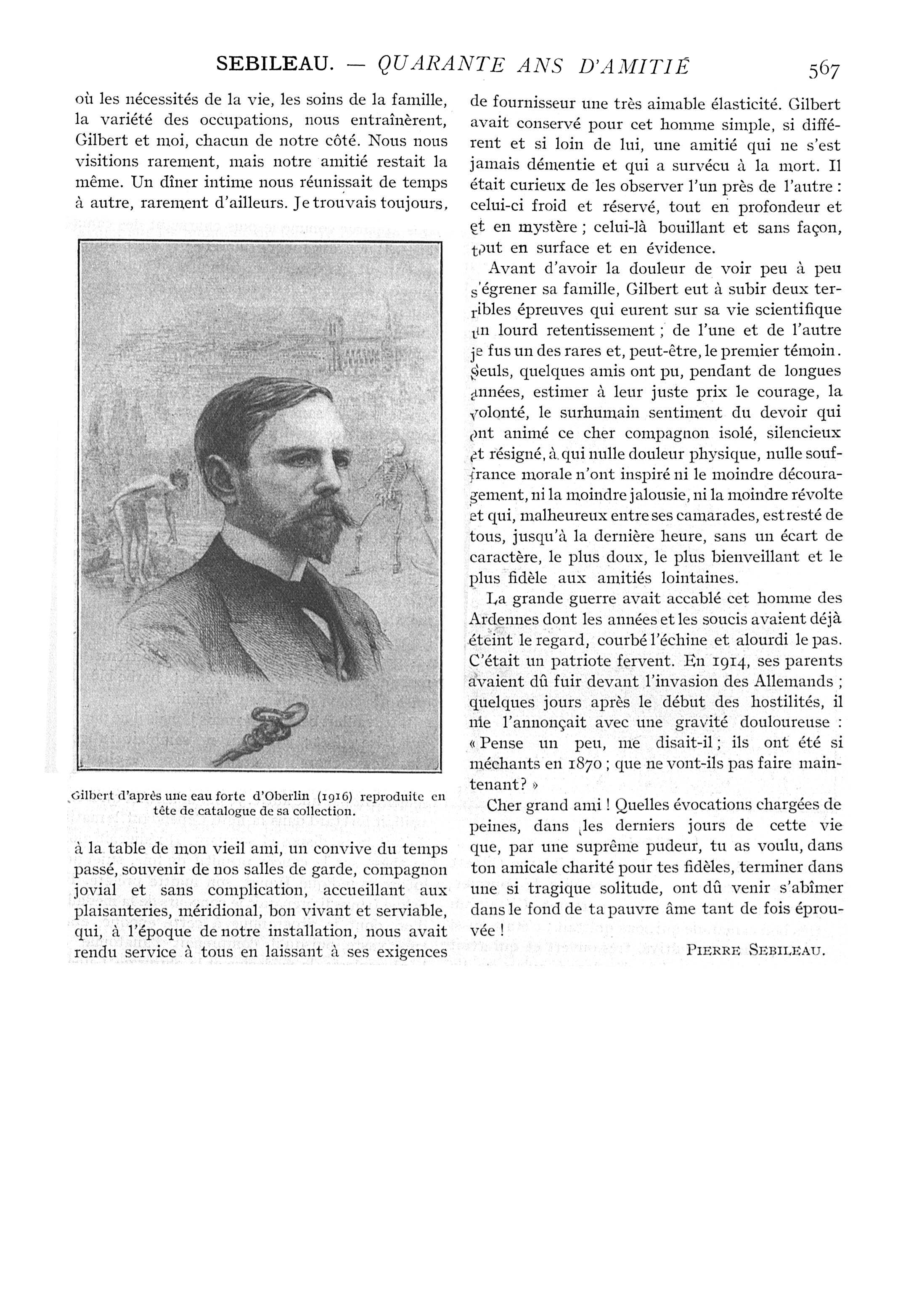 Gilbert d'après une eau forte d'Oberlin (1916) reproduite en tête de catalogue de sa collection - Paris médical : la semaine du clinicien