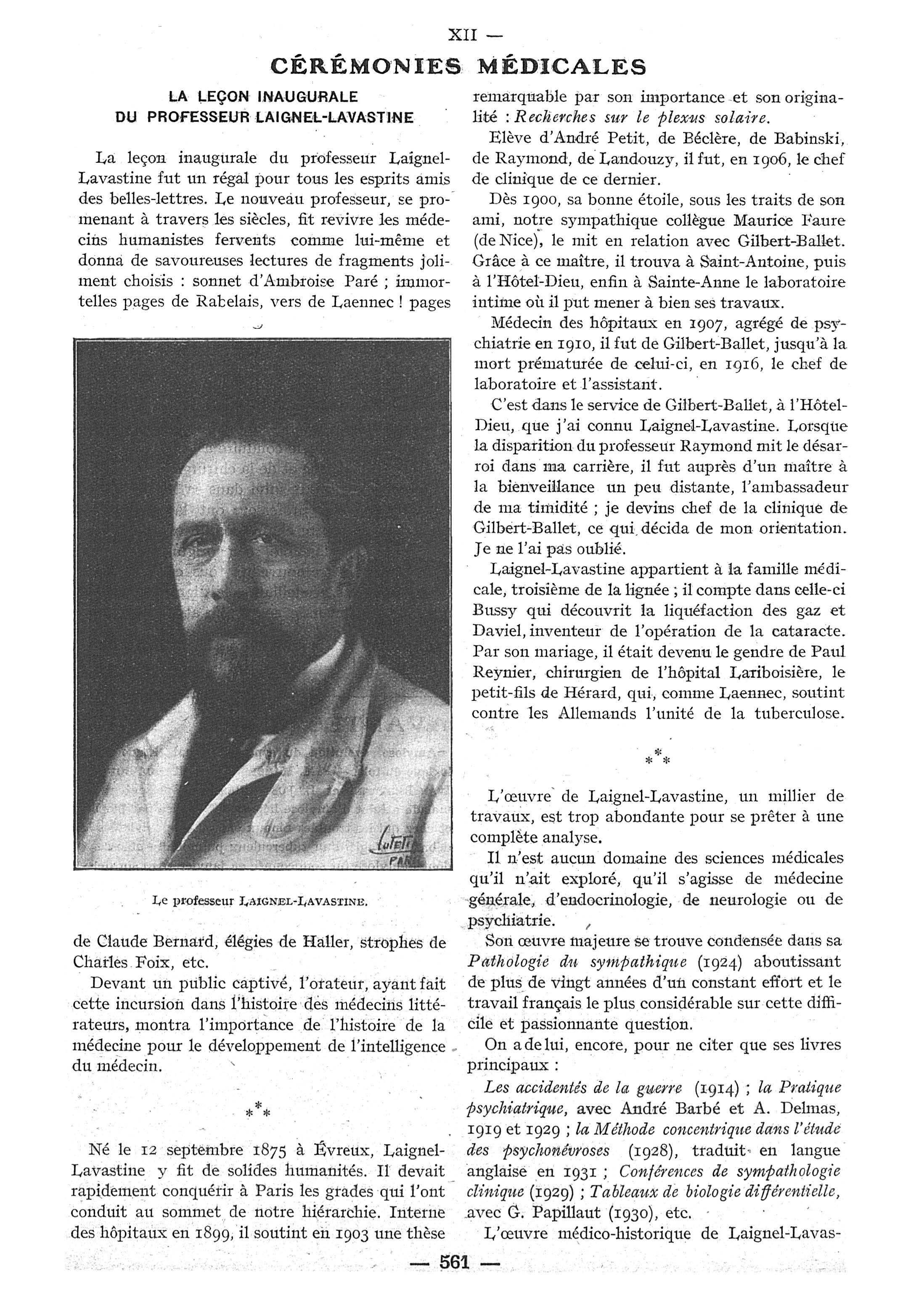 Le Professeur Laignel-Lavastine - Paris médical : la semaine du clinicien