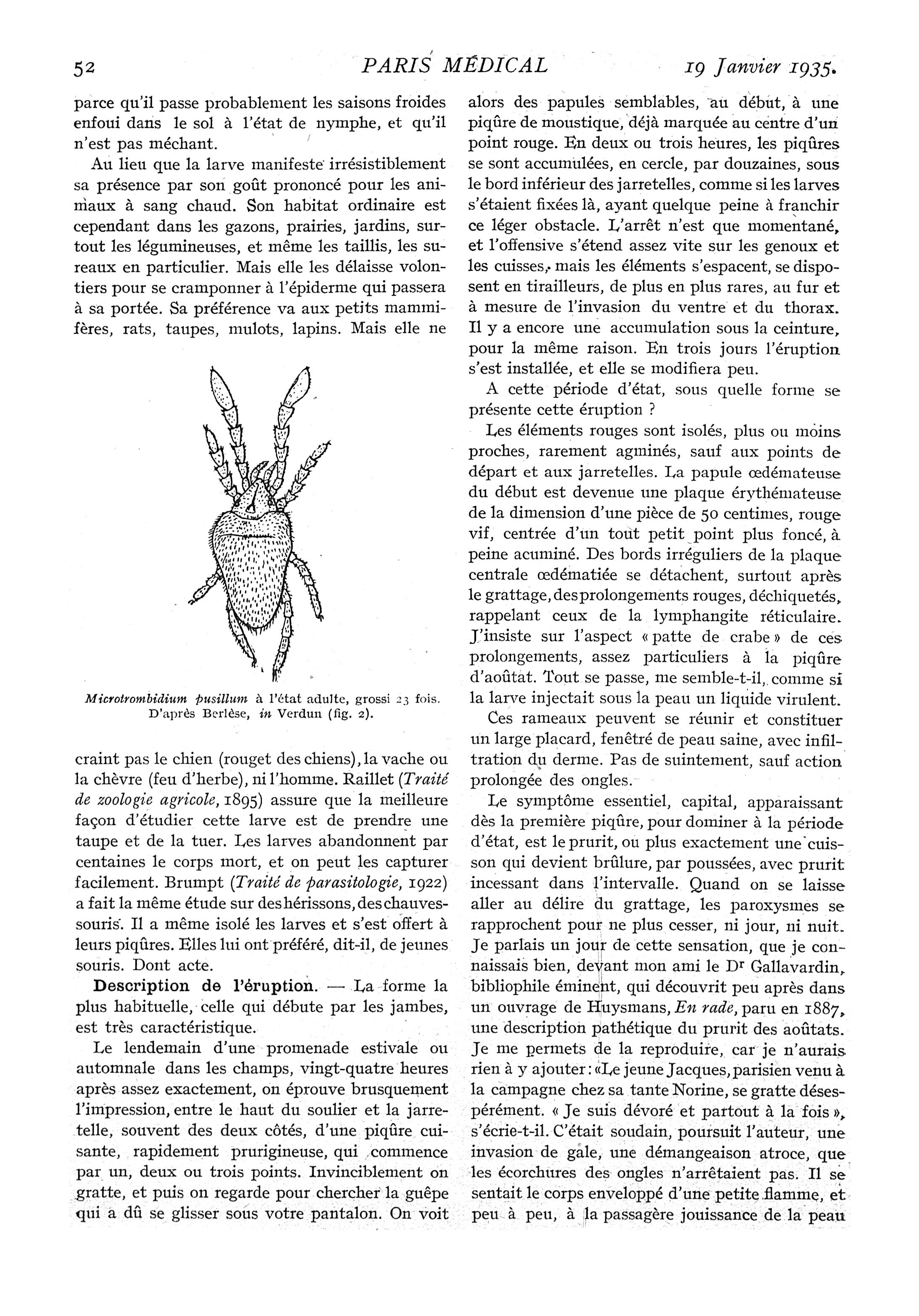 Fig. 2. - Microtrombidium pusillum à l'état adulte, grossi 23 fois. D'après Berlèse, in Verdun - Paris médical : la semaine du clinicien