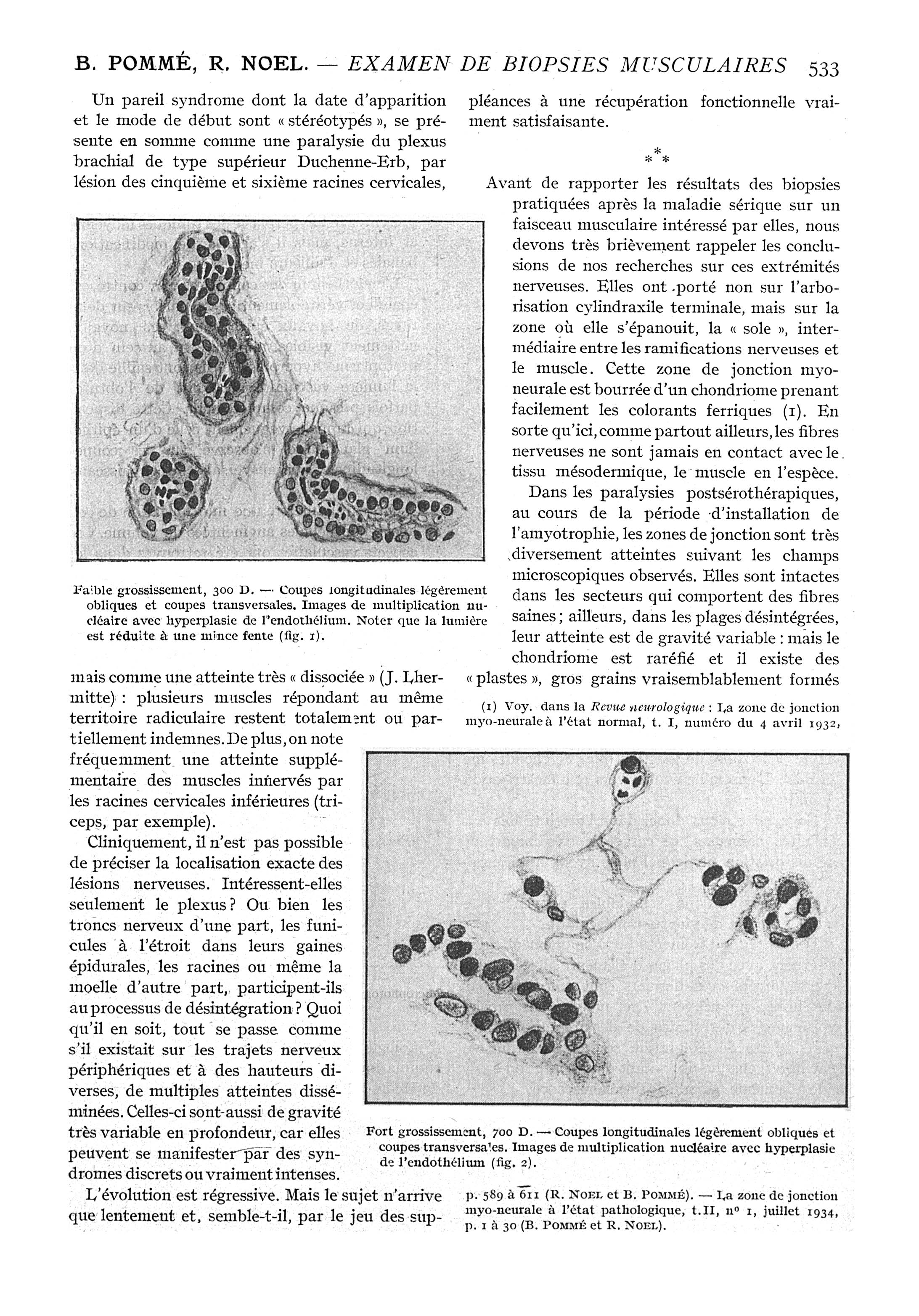Fig. 1. - Faible grossissement, 300 D. - Coupes longitudinales légèrement oblique et coupes transversales. Images de multiplication nucléaire avec hyperplasie de l'endothélium / Fig. 2. - Fort grossissement, 700 D. - Coupes longitudinales légèrement obliques et coupes transversales. Images de multiplication nucléaire avec hyperplasie de l'endothélium - Paris médical : la semaine du clinicien