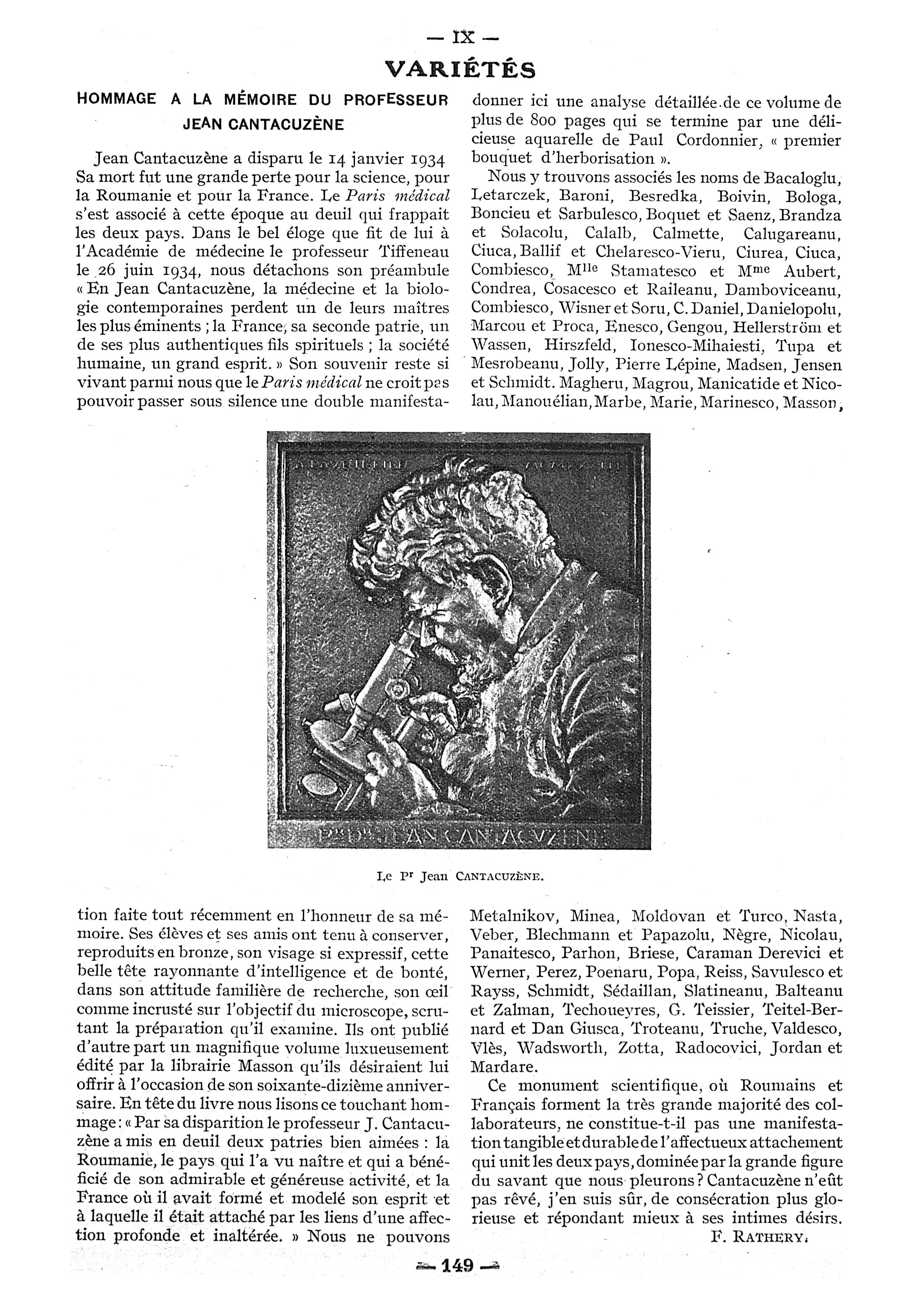 Le Pr Jean Cantacuzène - Paris médical : la semaine du clinicien