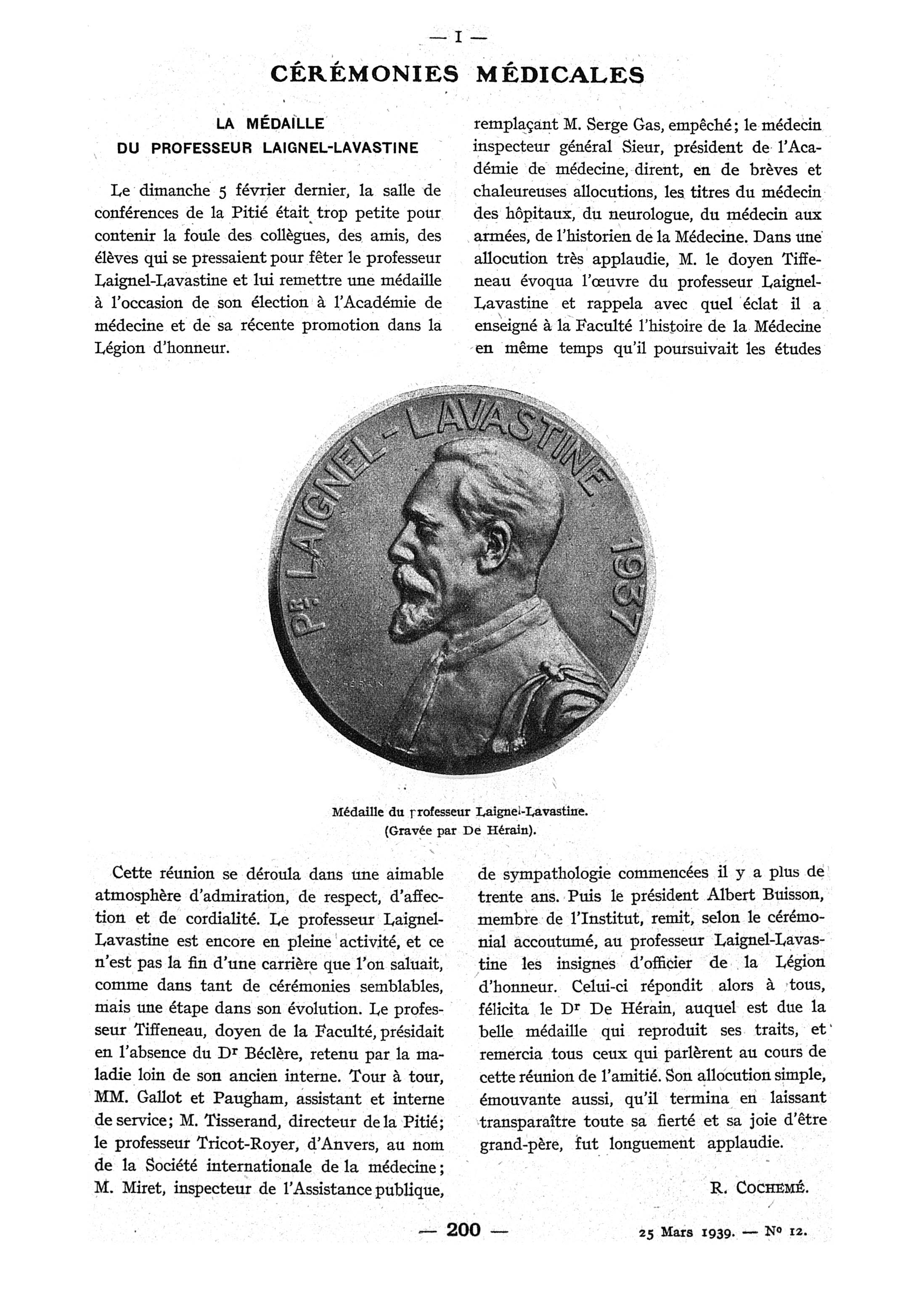Médaille du Professeur Laignel-Lavastine - Paris médical : la semaine du clinicien