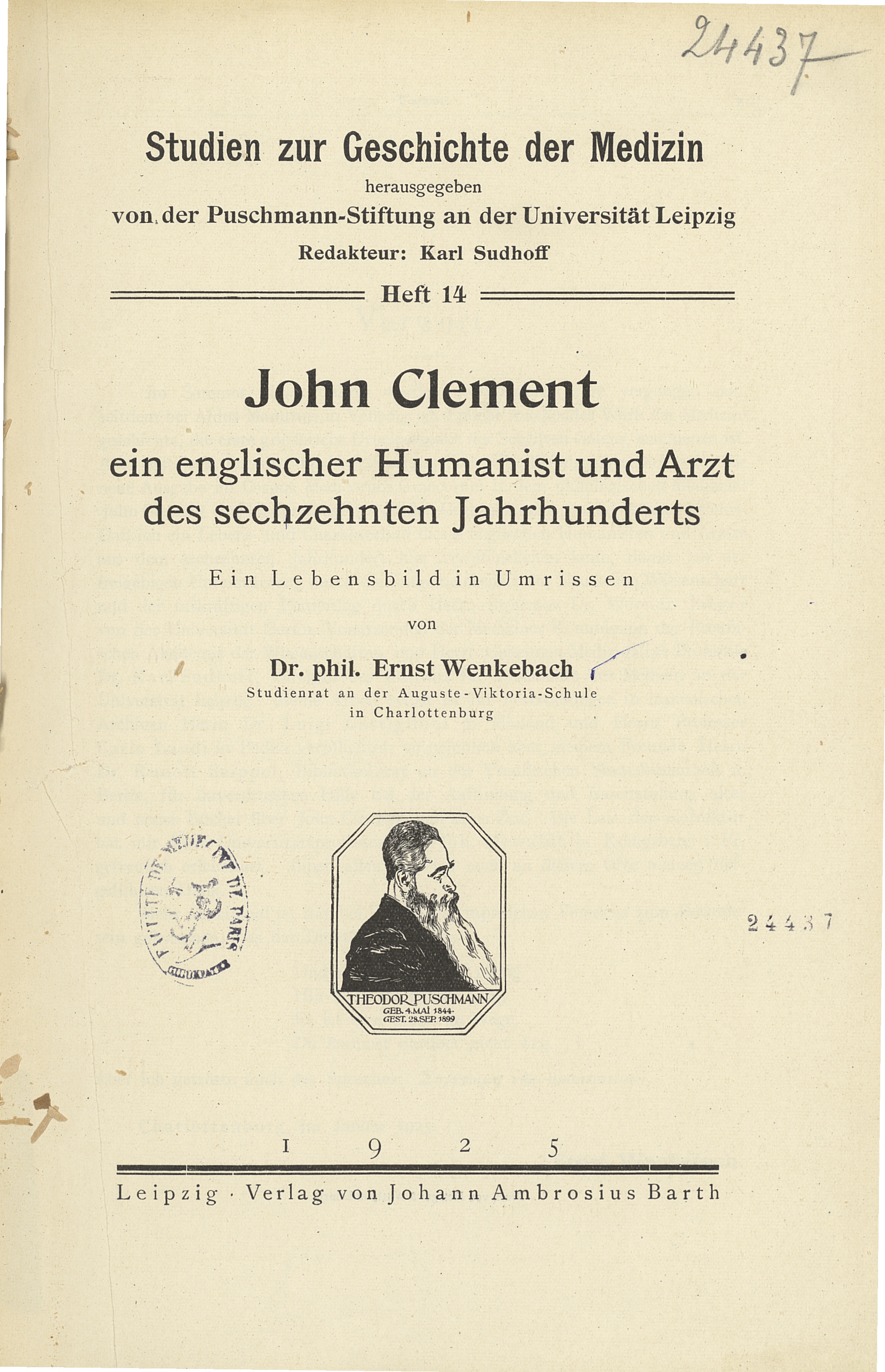 Theodor Puschmann - John Clement, ein englischer Humanist und Arzt des sechzehnten Jahrhunderts