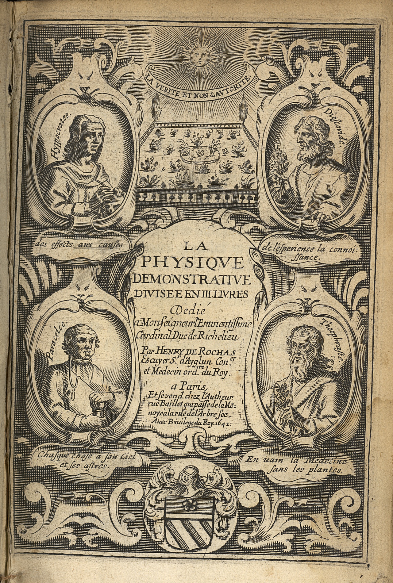[Frontispice] - La physique demonstrative, divisee en trois livres. Le premier traicte des eaux minerales..