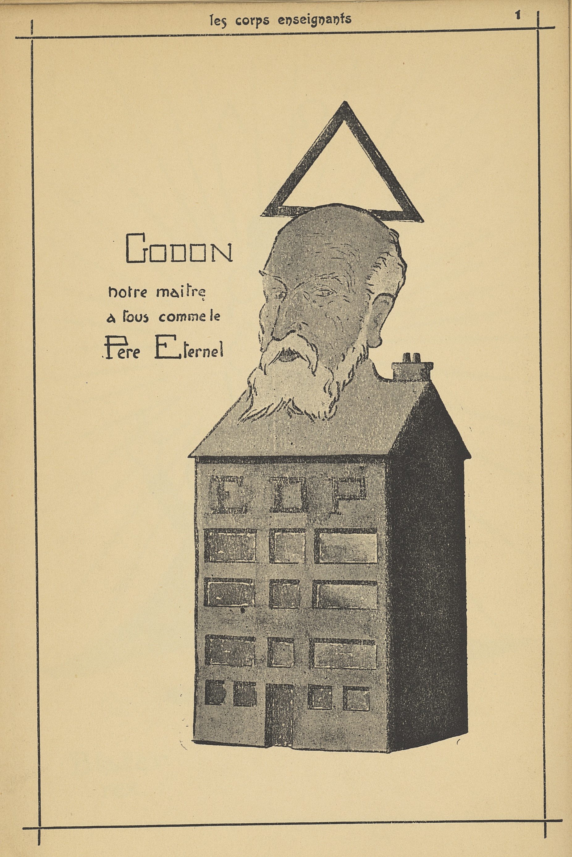 Godon notre maître à tous comme le Père Eternel - Les corps enseignants de l'école dentaire de Paris : quelques corps enseignés et des dessins humoristiques