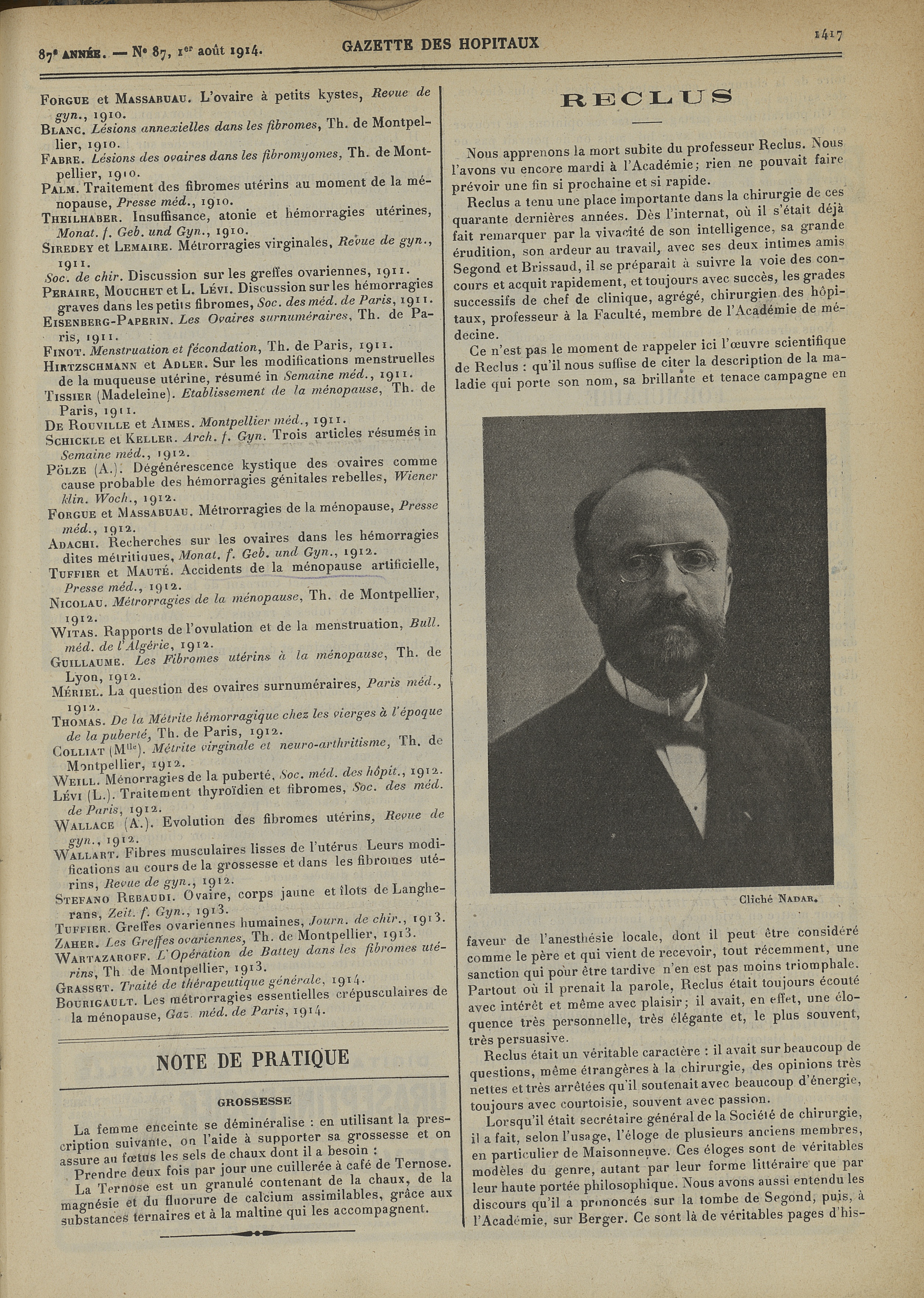 Cliché Nadar [Reclus] - Gazette des hôpitaux civils et militaires (Lancette française)