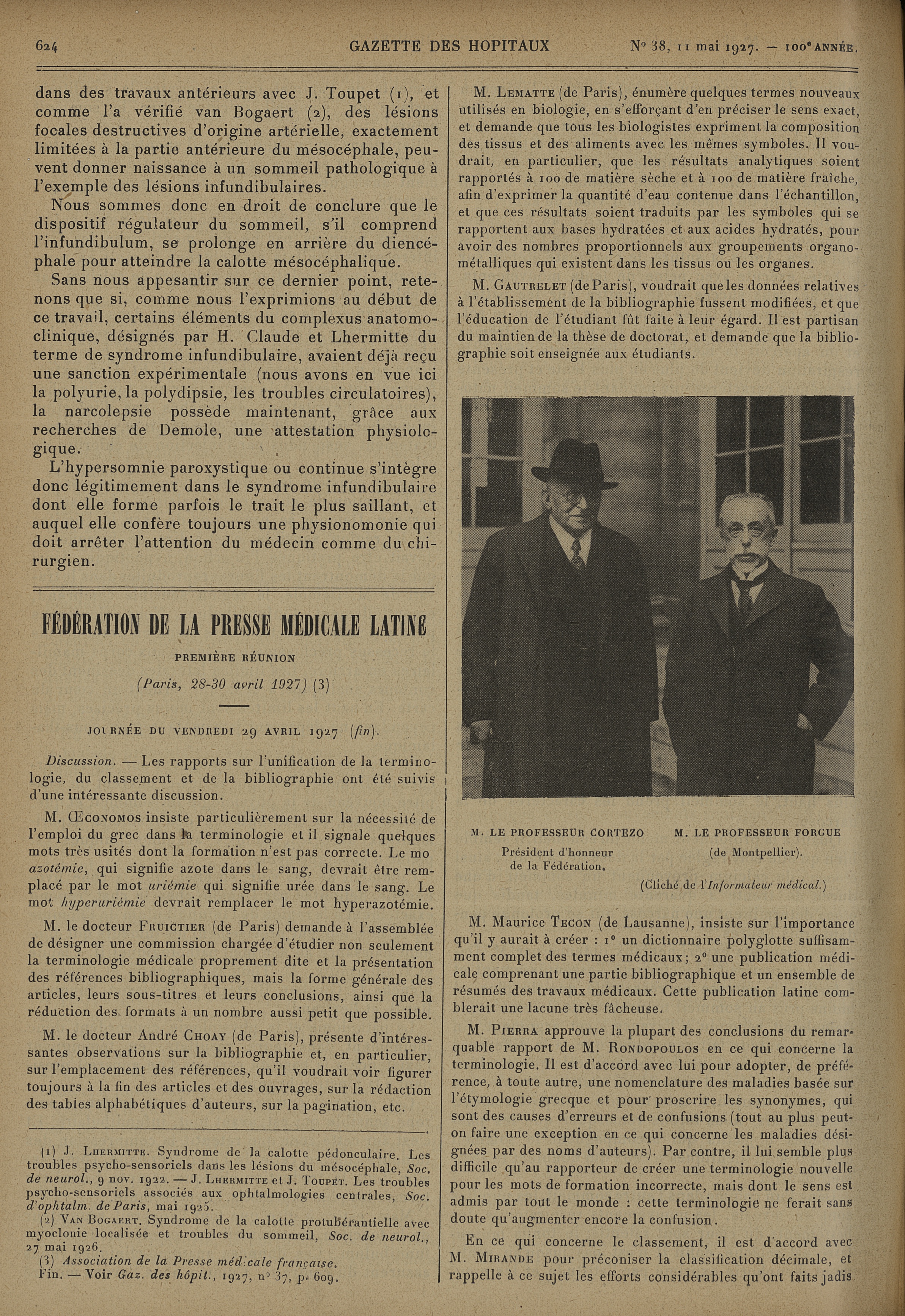 M. le Professeur Cortezo..., M. le Professeur Forgue... (Cliché de l'Informateur médical) - Gazette des hôpitaux civils et militaires (Lancette française)