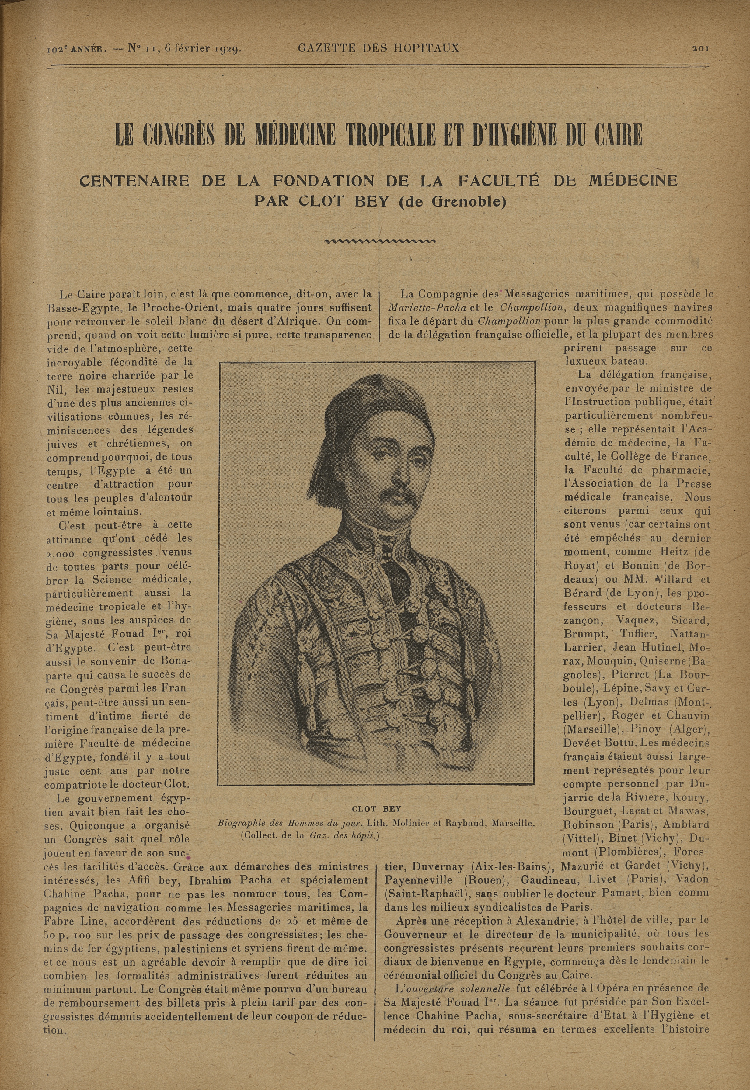Clot Bey. Biographie des hommes du jour. Lith. Molinier et Raybaud, Marseille. (Collect. De la Gaz, des hopit.) - Gazette des hôpitaux civils et militaires (Lancette française)