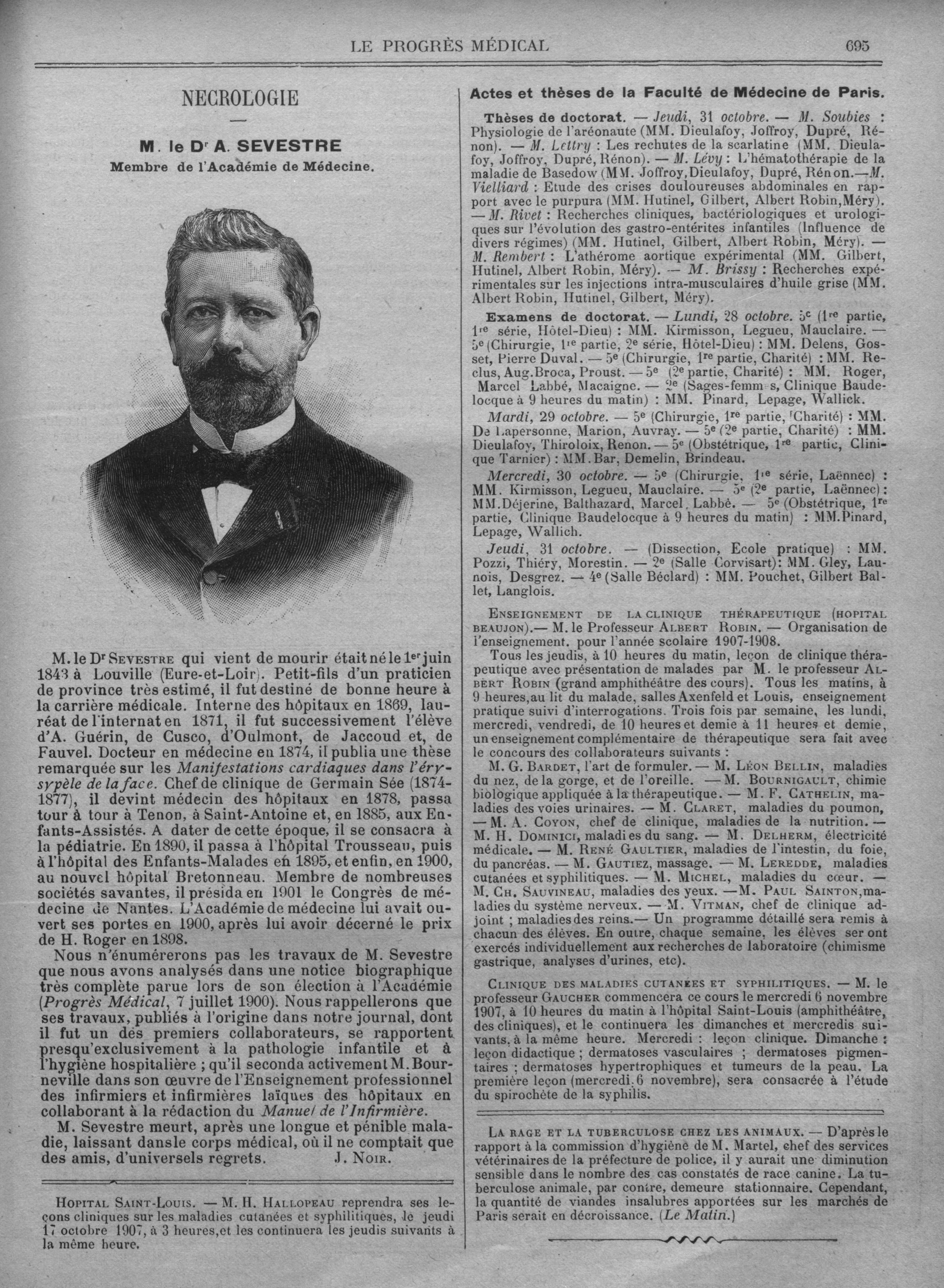 M. le Dr A. Sevestre - Le progrès médical : journal de médecine, de chirurgie et de pharmacie