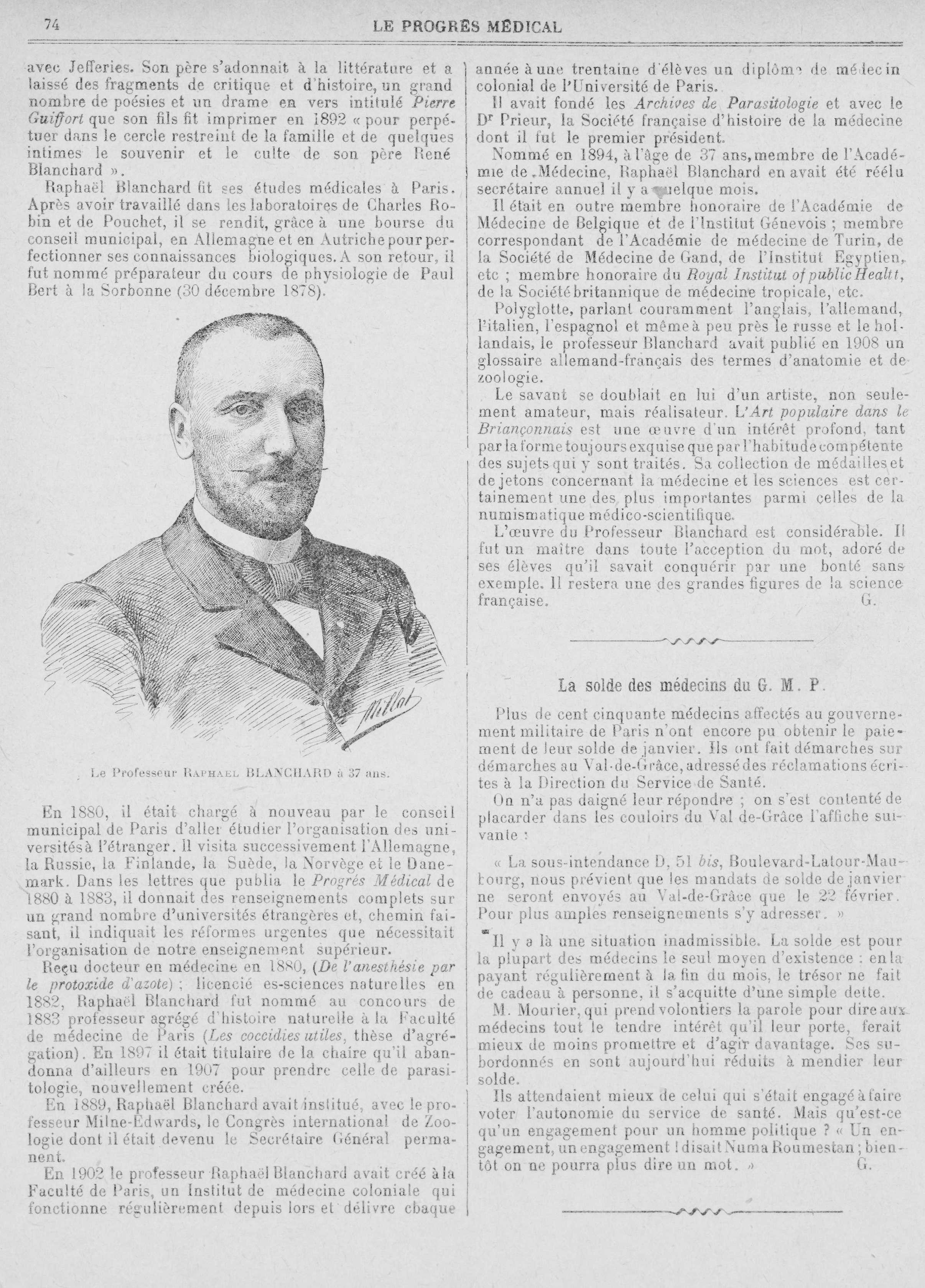 Le Professeur Raphaël Blanchard - Le progrès médical