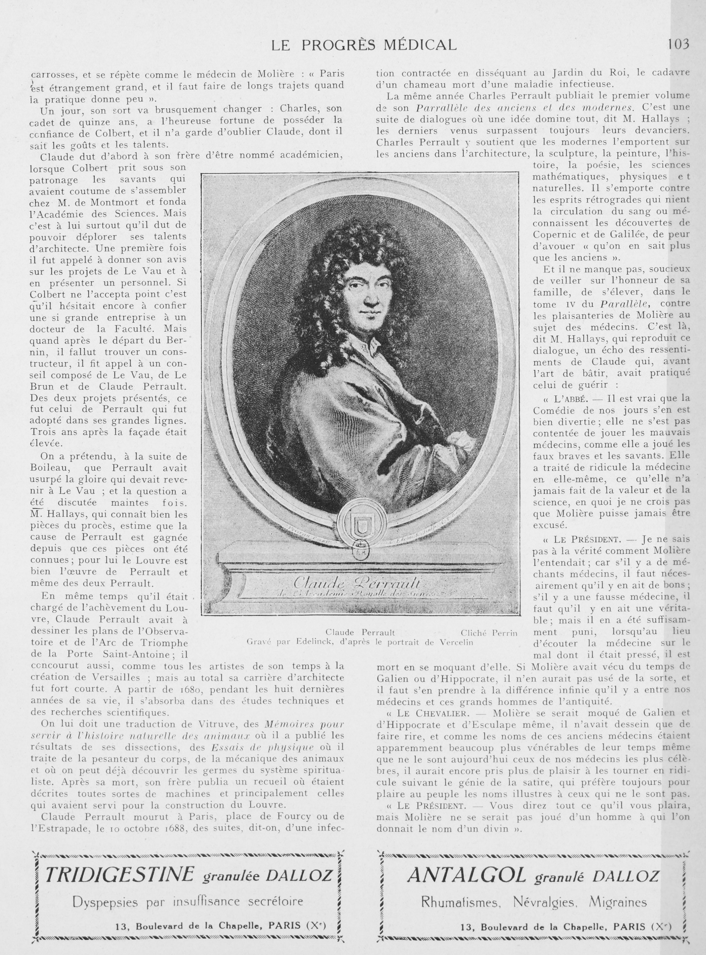 Claude Perrault. Gravé par Edelinck, d'après le portrait de Vercelin - Le progrès médical