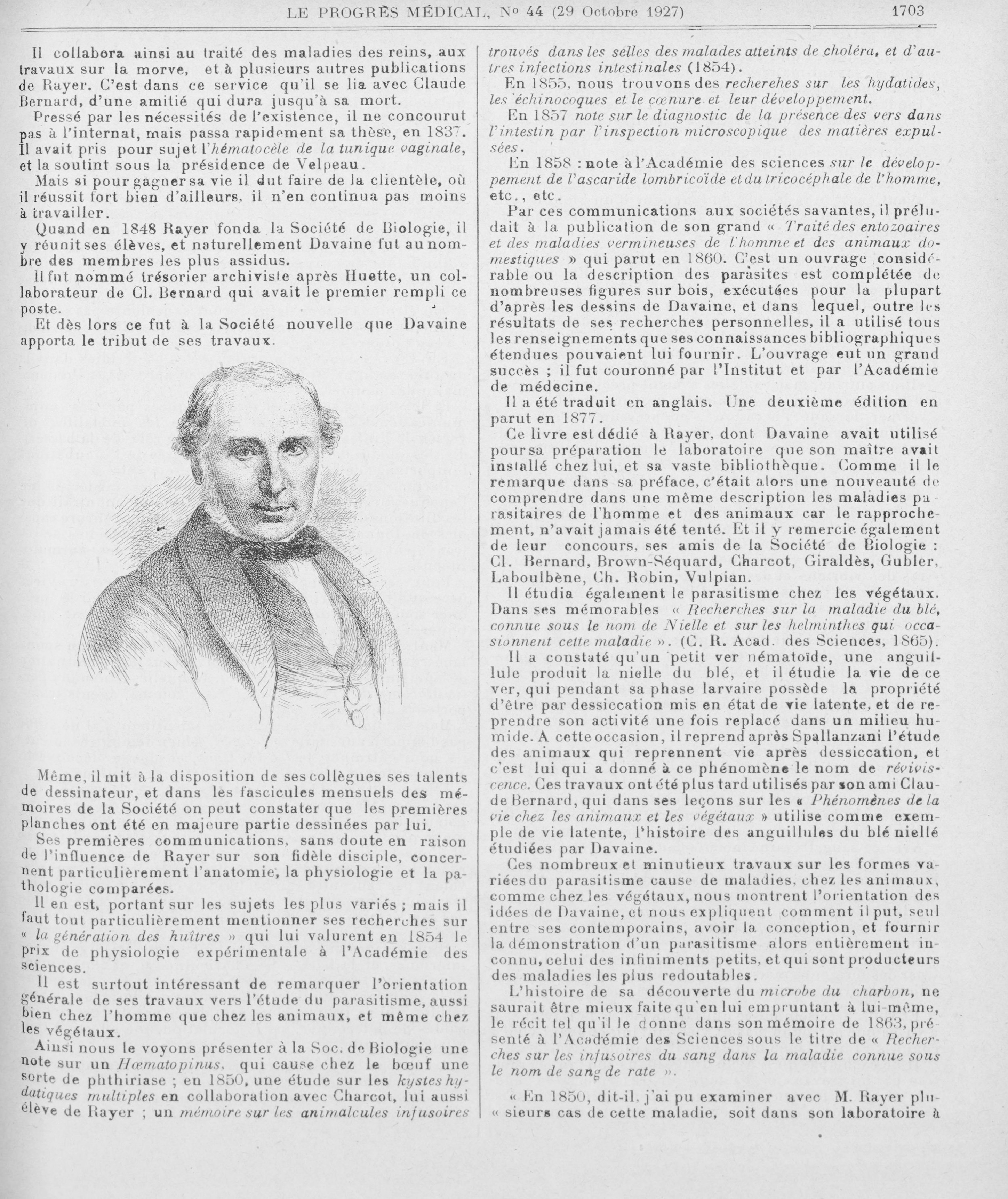 [Davaine 1812-1882] - Le progrès médical