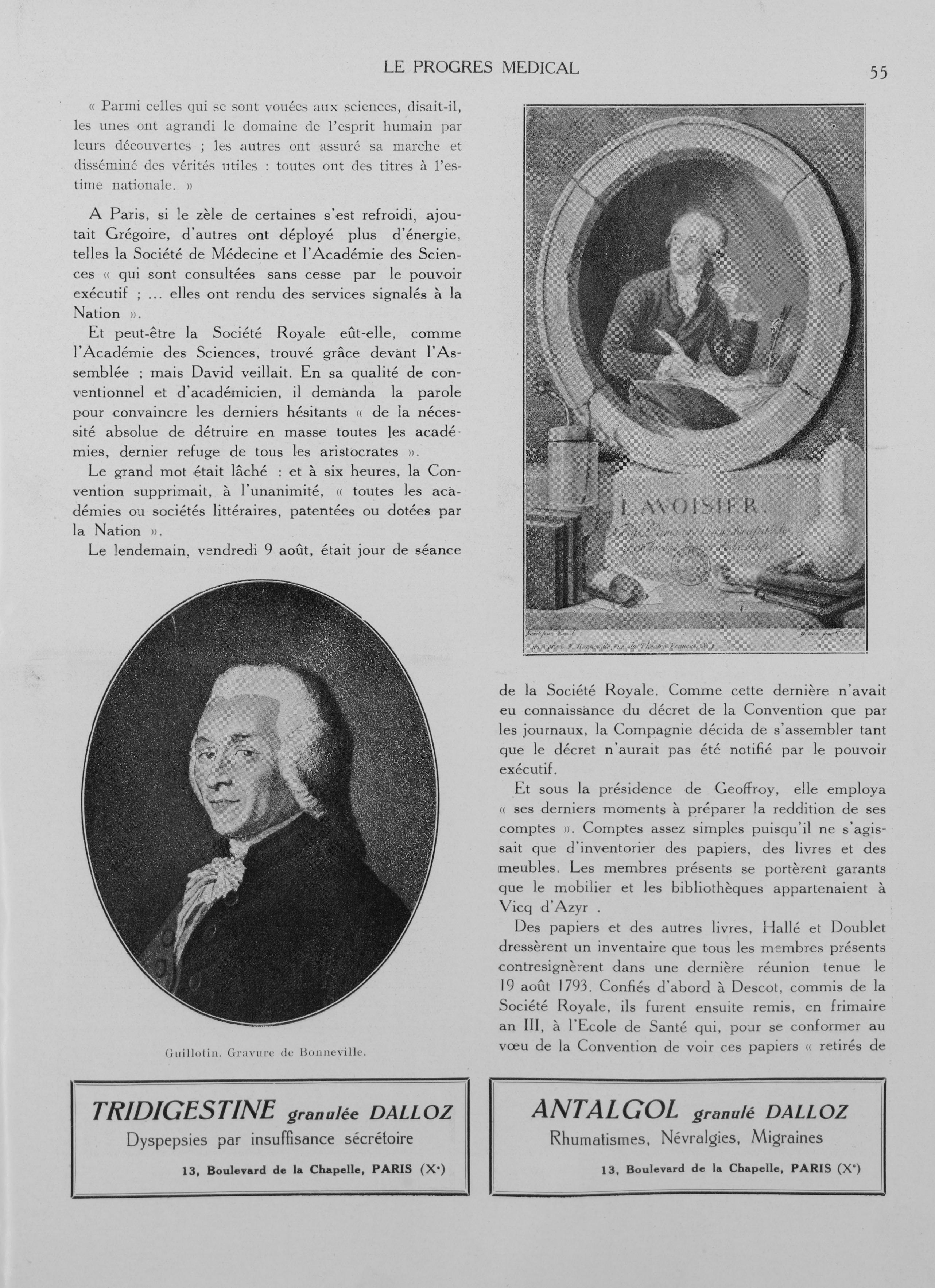 Guillotin. Gravure de Bonneville / Lavoisier - Le progrès médical