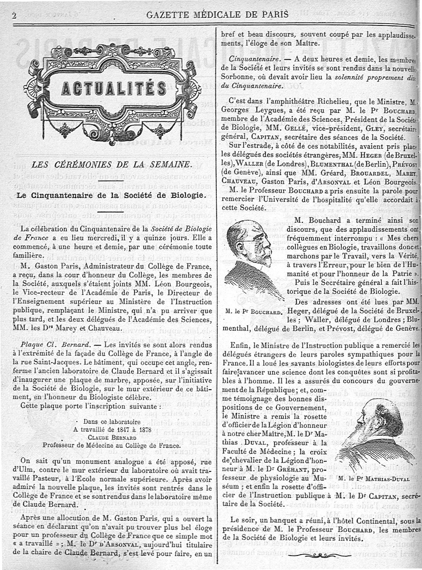 M. le Pr Bouchard / M. le Pr Mathias-Duval - Gazette médicale de Paris : journal de médecine et des sciences accessoires