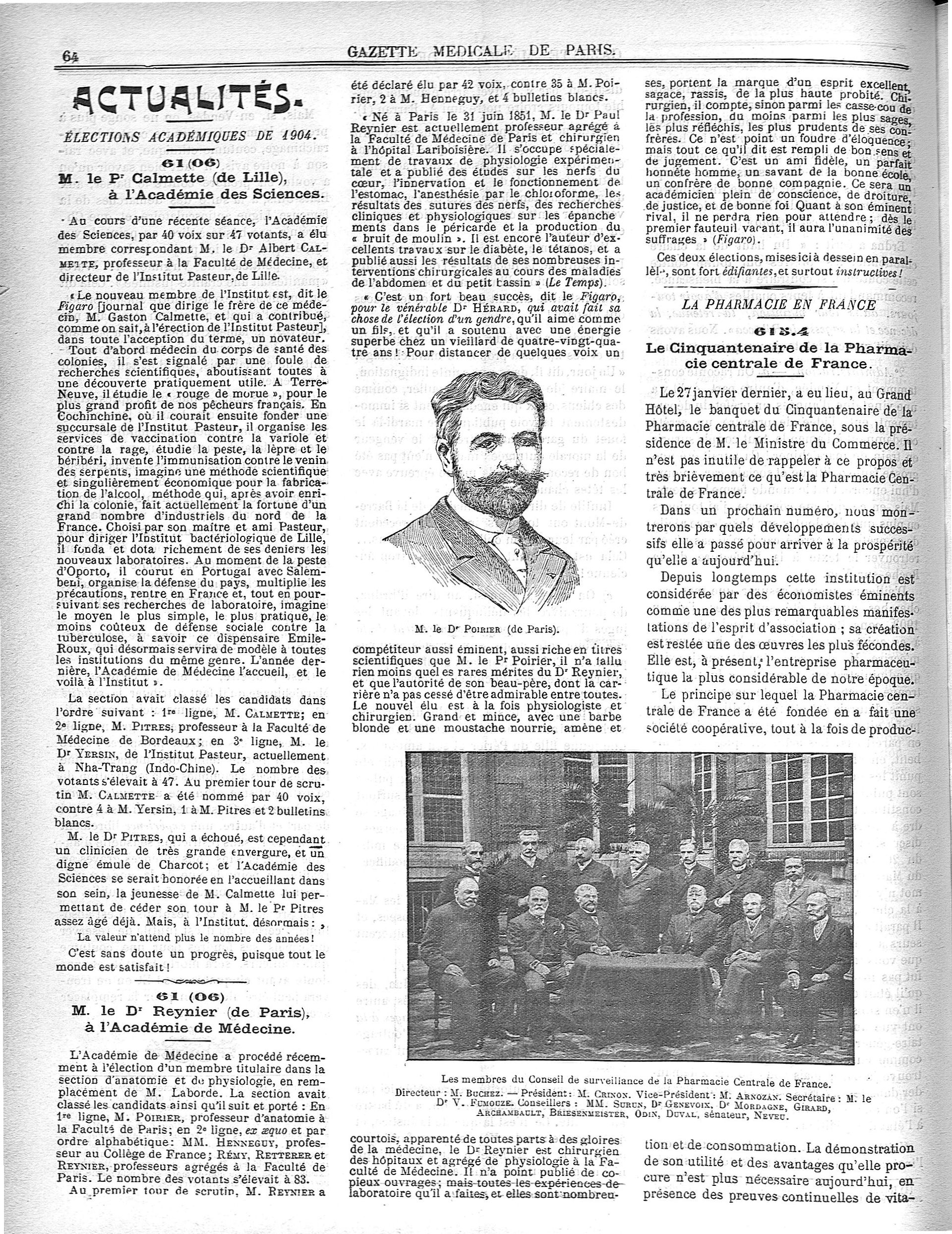 M. le Dr Poirier / Les membres du conseil de surveillance de la pharmacie centrale de France - Gazette médicale de Paris : journal de médecine et des sciences accessoires