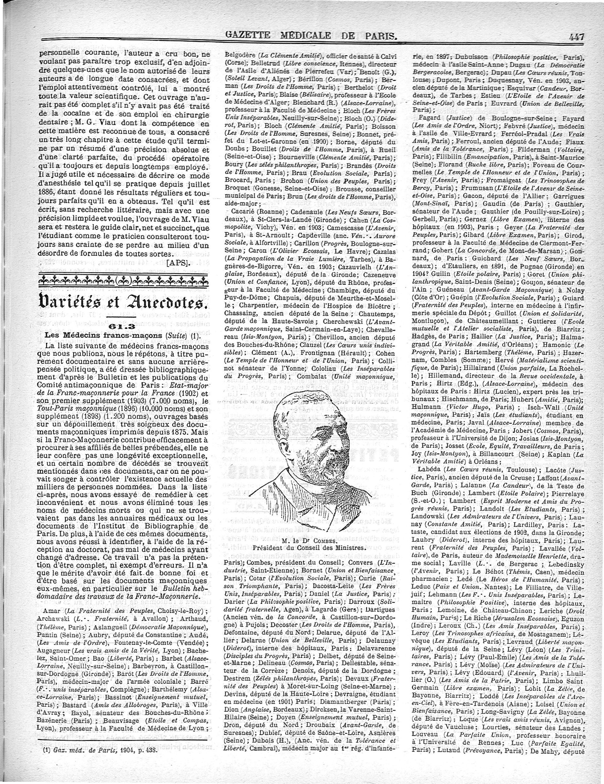 M. le Dr Combes - Gazette médicale de Paris : journal de médecine et des sciences accessoires