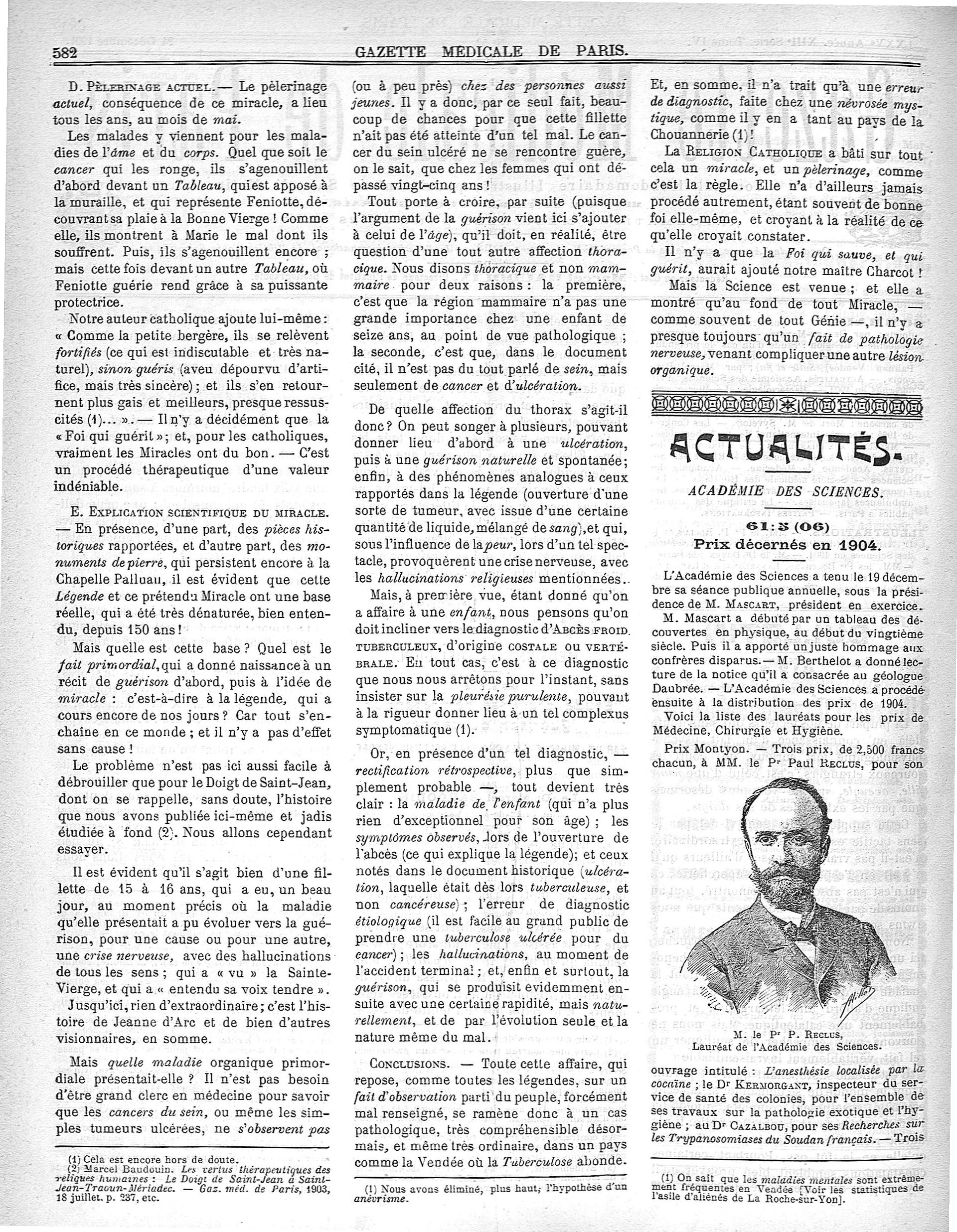 M. le Pr P. Reclus - Gazette médicale de Paris : journal de médecine et des sciences accessoires