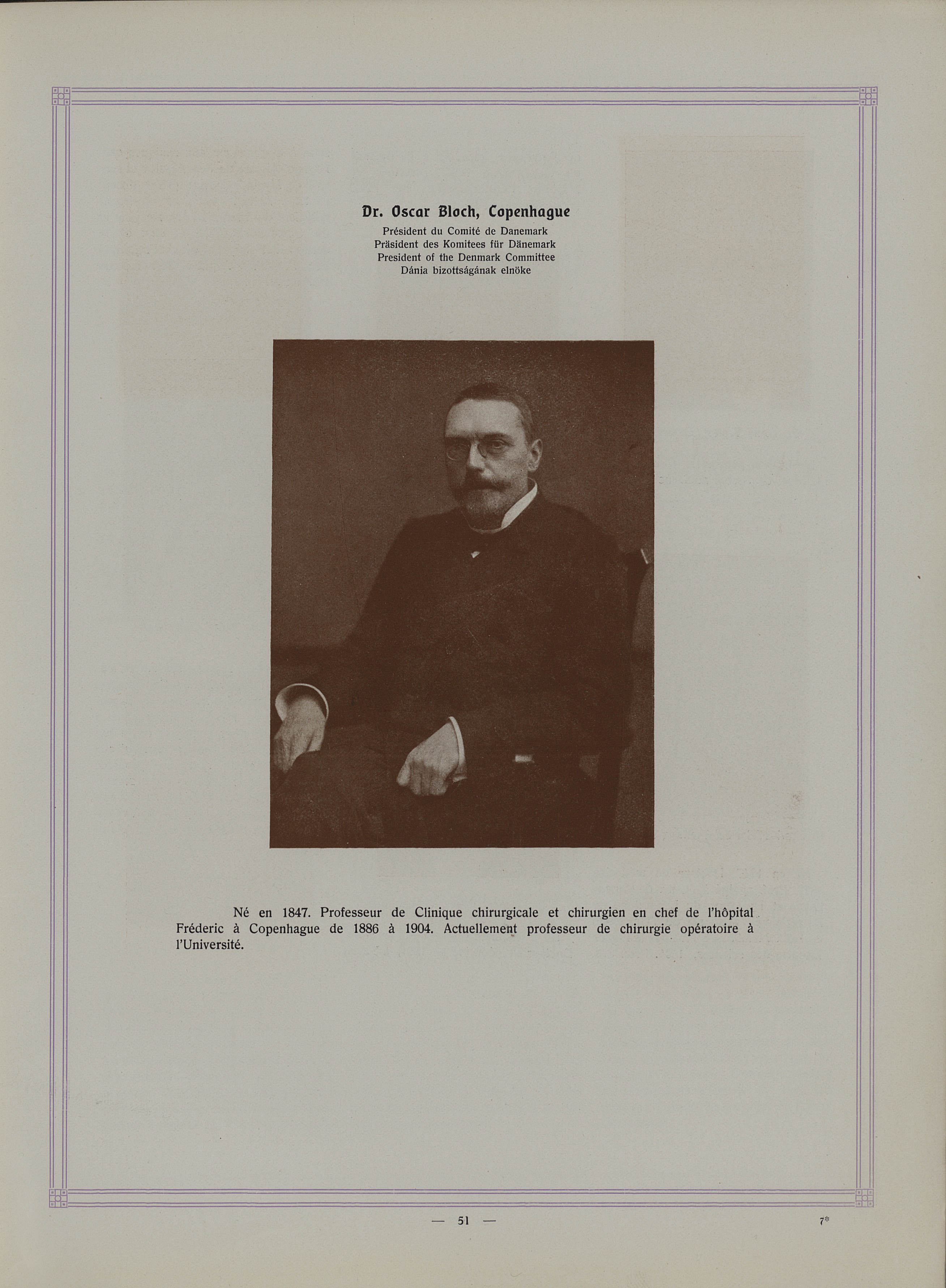 Dr Oscar Bloch, Copenhague - Album du XVI° congrès international de médecine