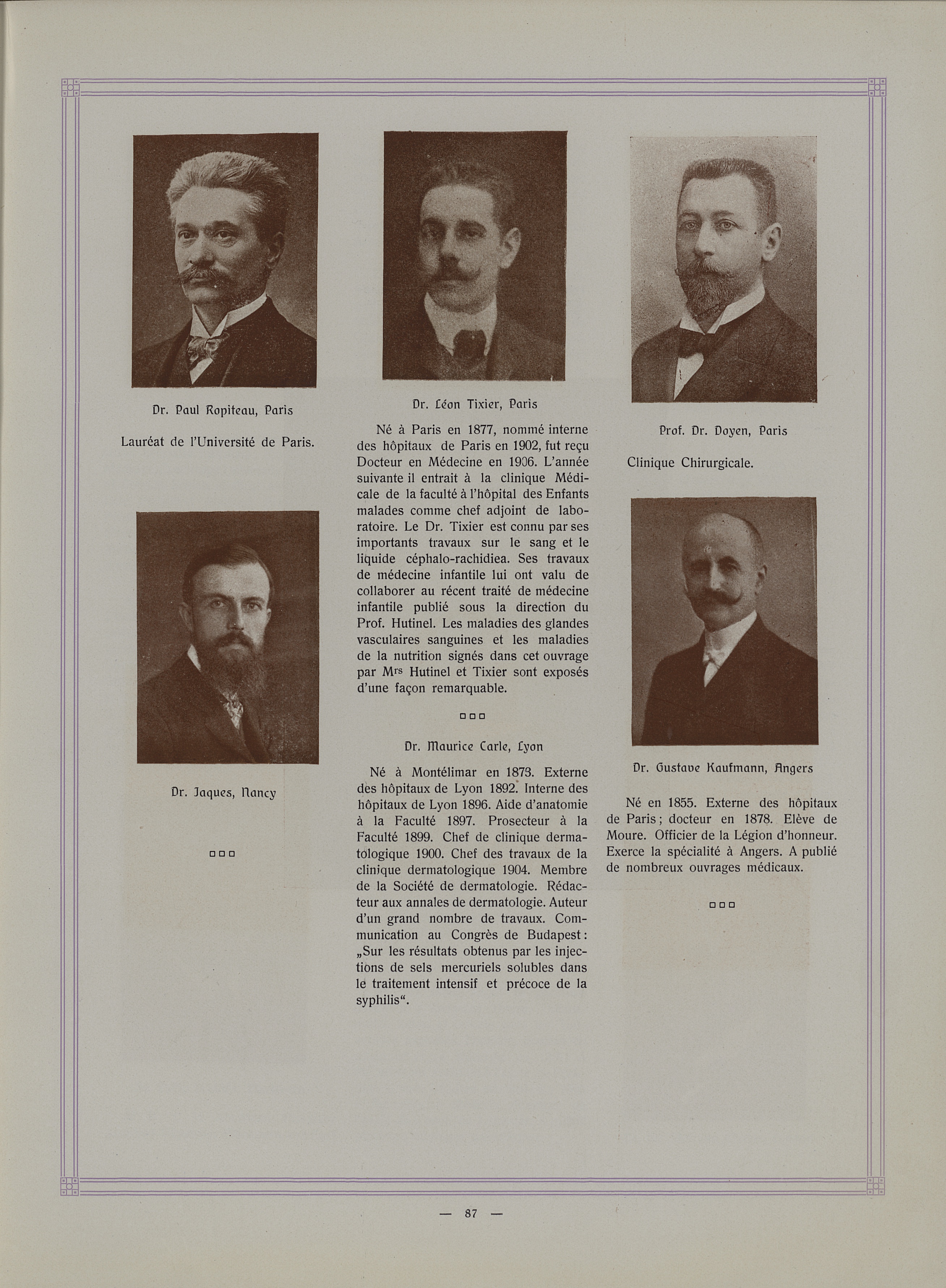 Paul Ropiteau / Léon Tixier / Doyen / Jaques / Gustave Kaufmann - Album du XVI° congrès international de médecine