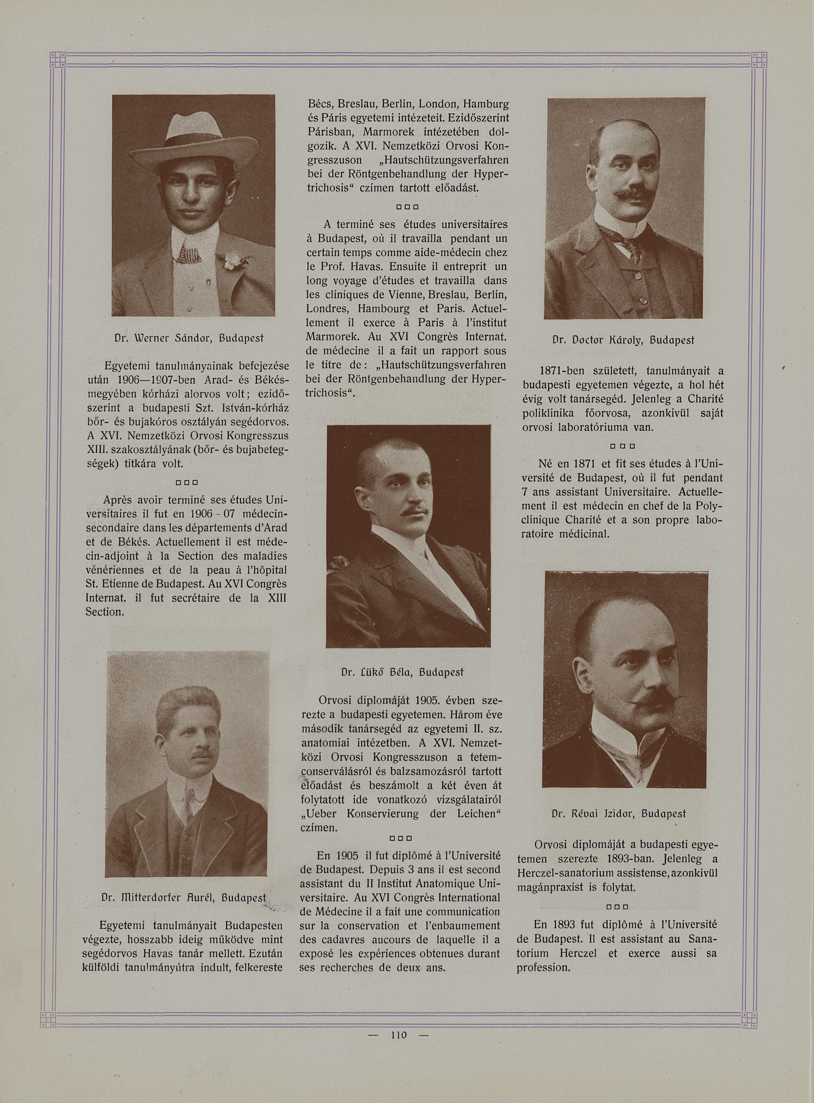 Werner Sàndor / Doctor Kàroly / Mitterdorfer Aurél / Lükö Béla / Révai Izidor - Album du XVI° congrès international de médecine