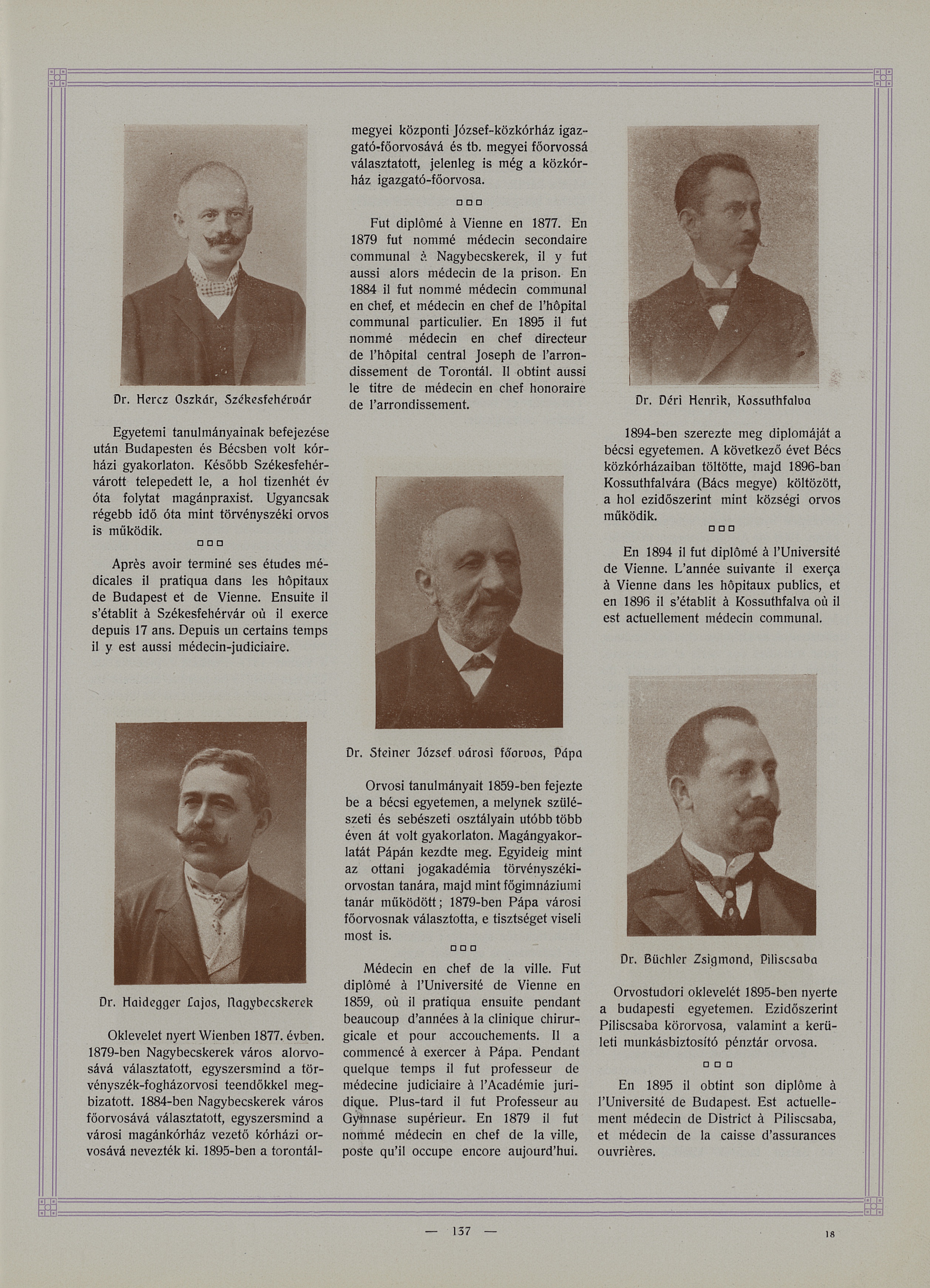 Hercz Oszkàr / Haidegger Lajos / Steiner Jòzsef / Déri Henrik / Büchler Zsigmond - Album du XVI° congrès international de médecine