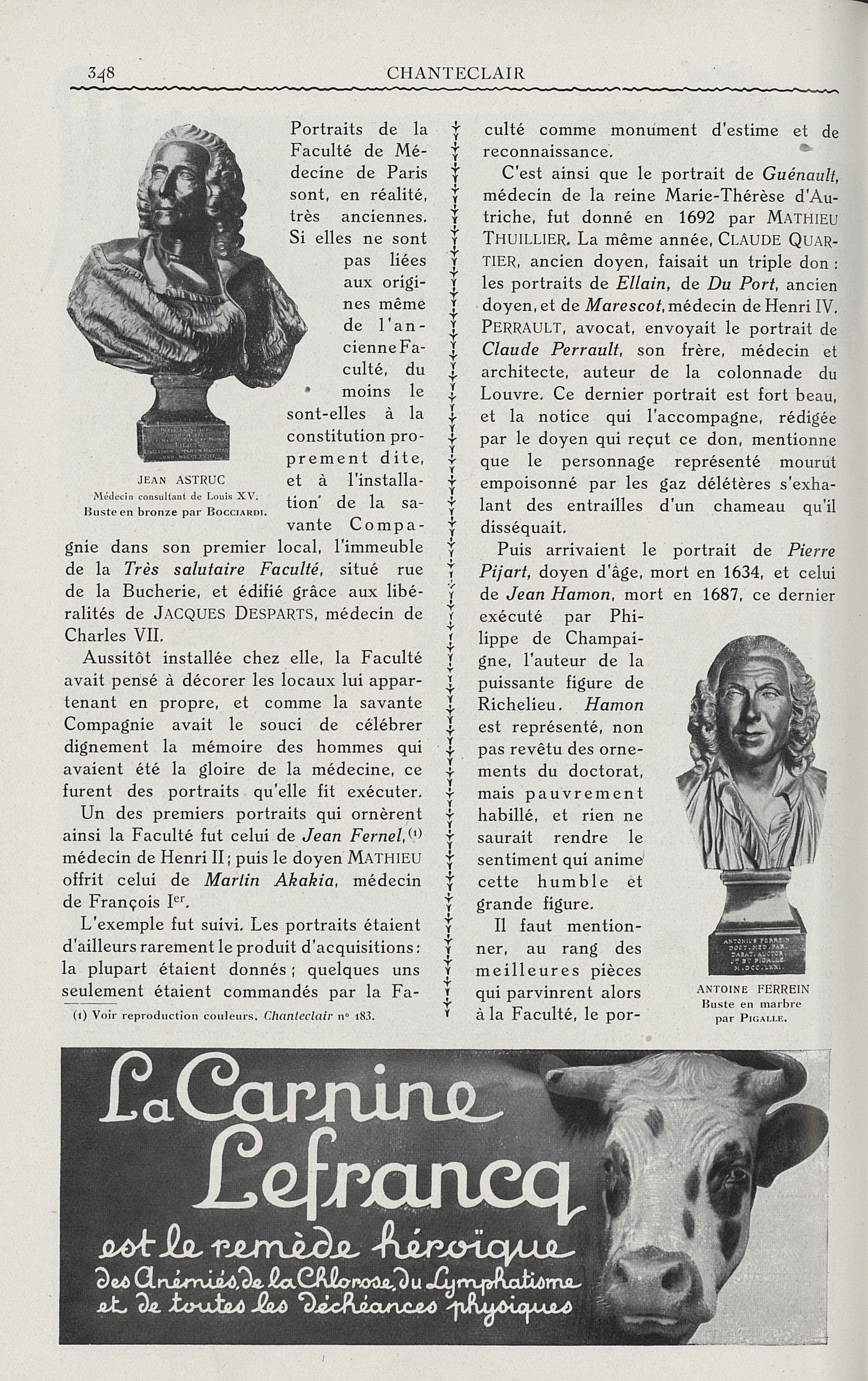 Jean Astruc. Médecin consultant de Louis XV. Buste en bronze par Bocciardi / Antoine Ferrein. Buste en marbre par Pigalle - Chanteclair