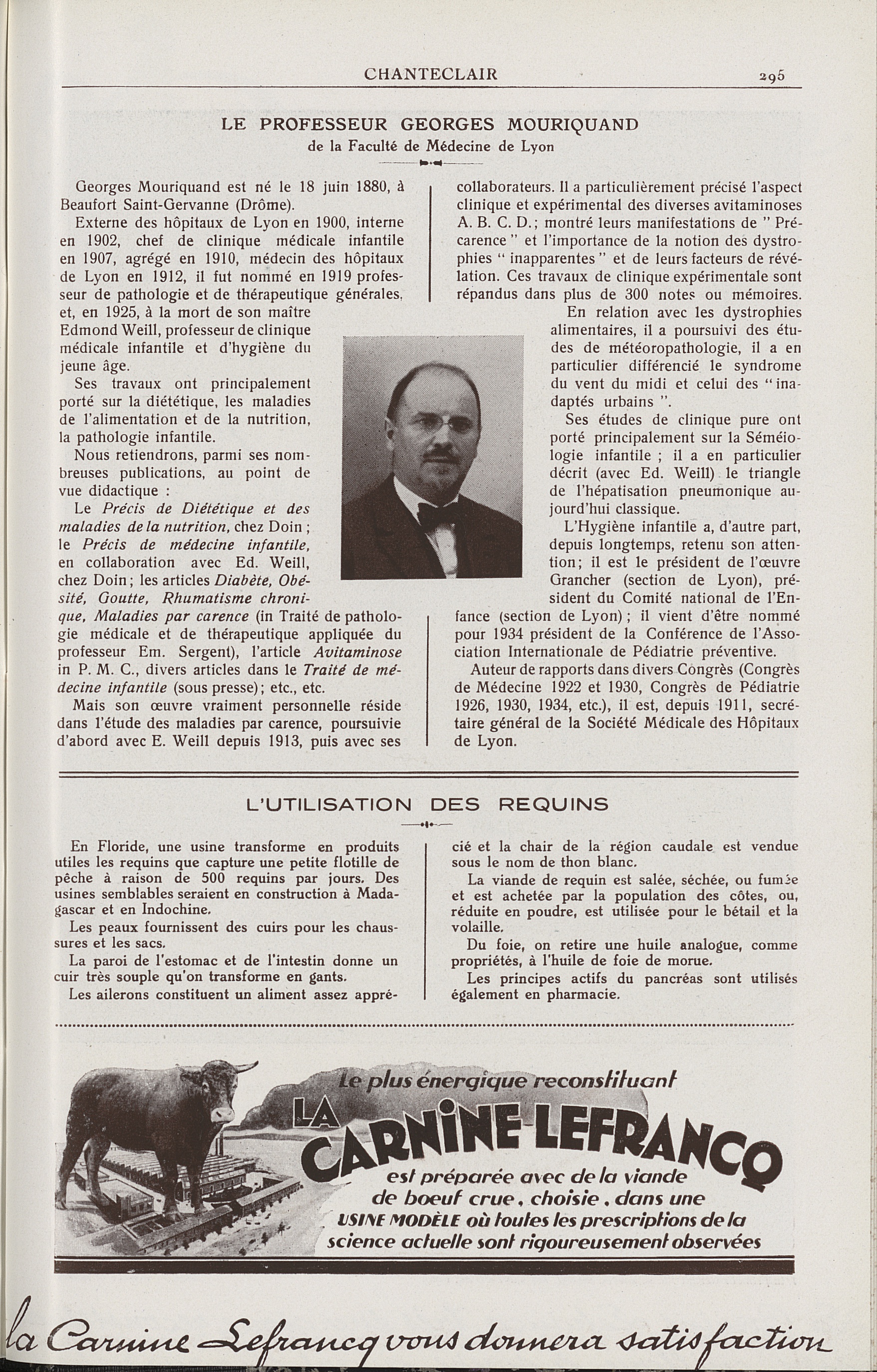 Le Professeur Georges Mouriquand de la Faculté de médecine de Lyon - Chanteclair